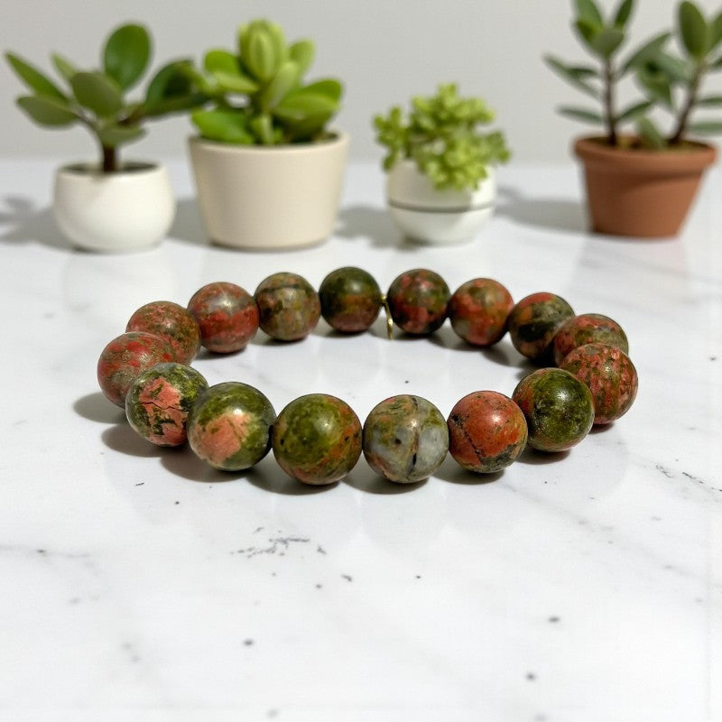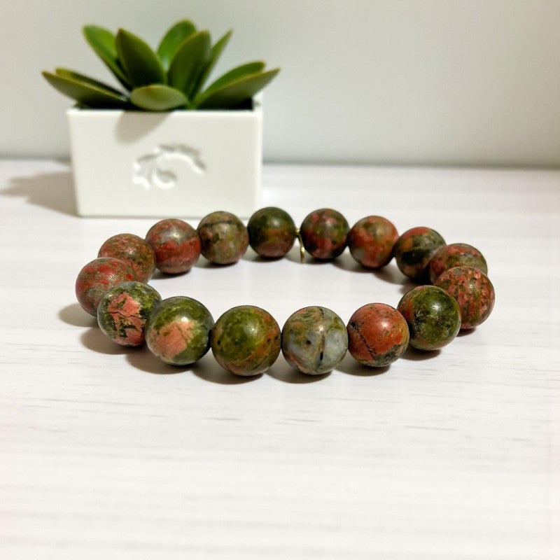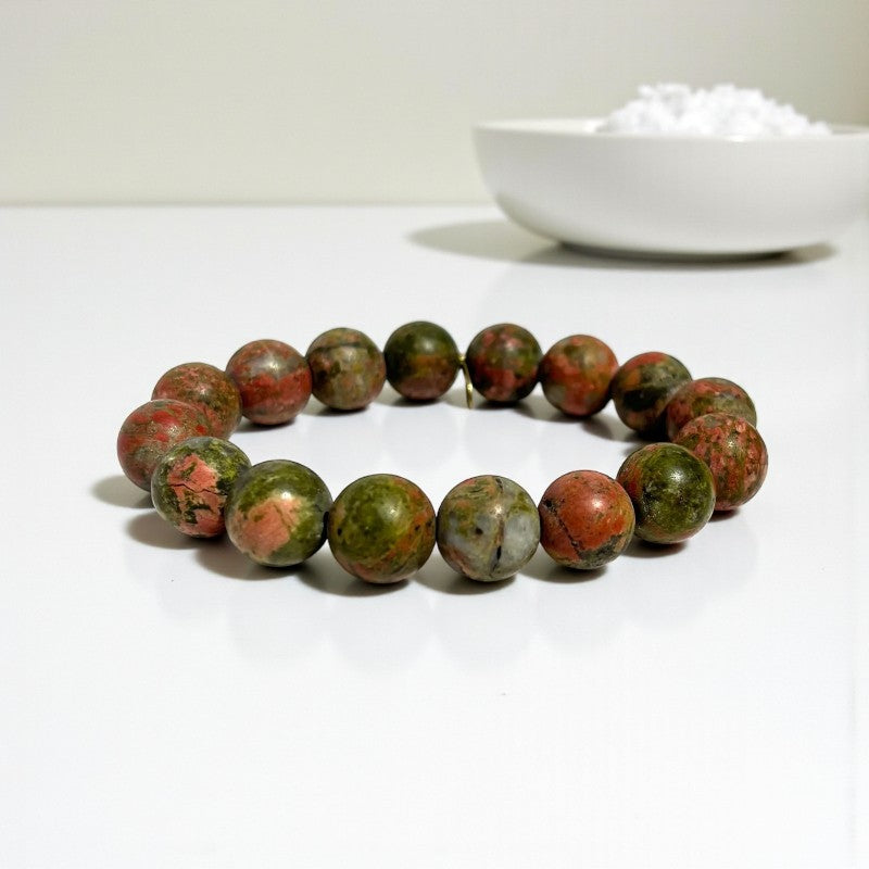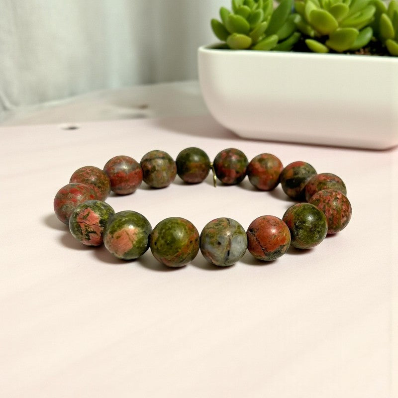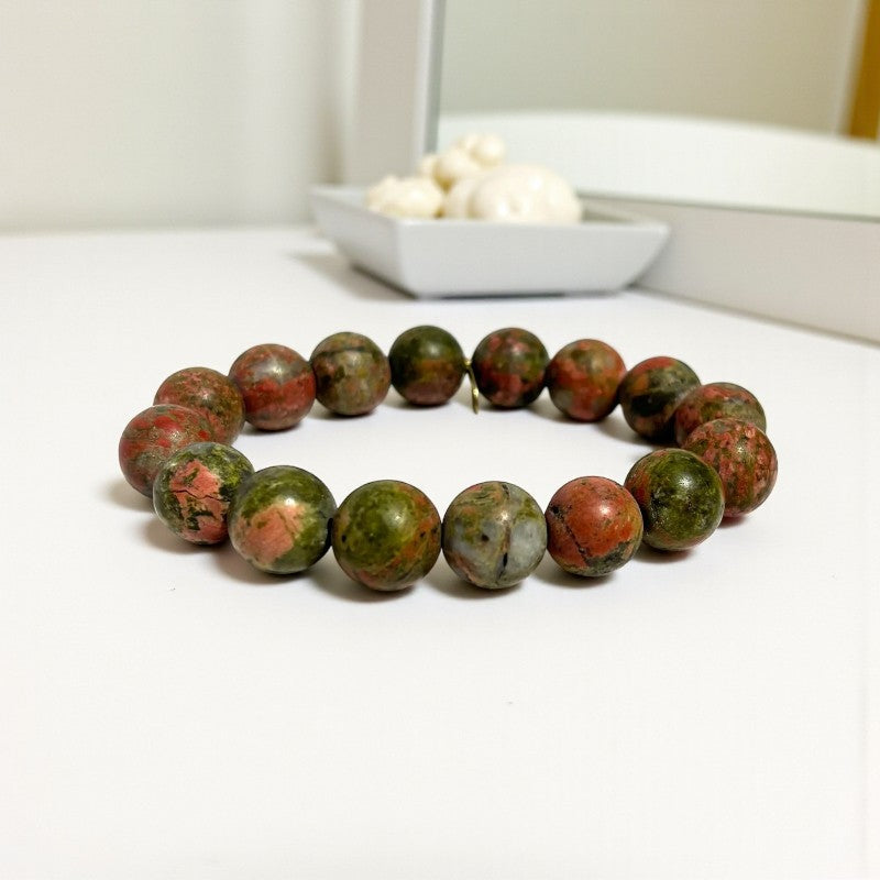 12mm Unakite Stone Bracelet