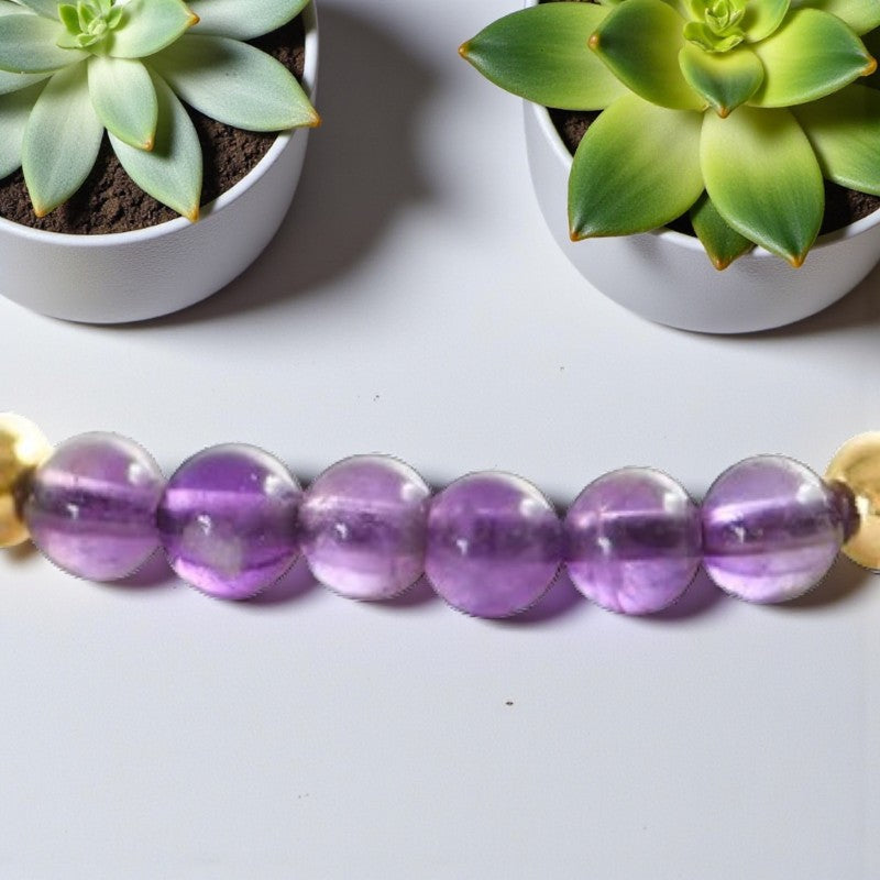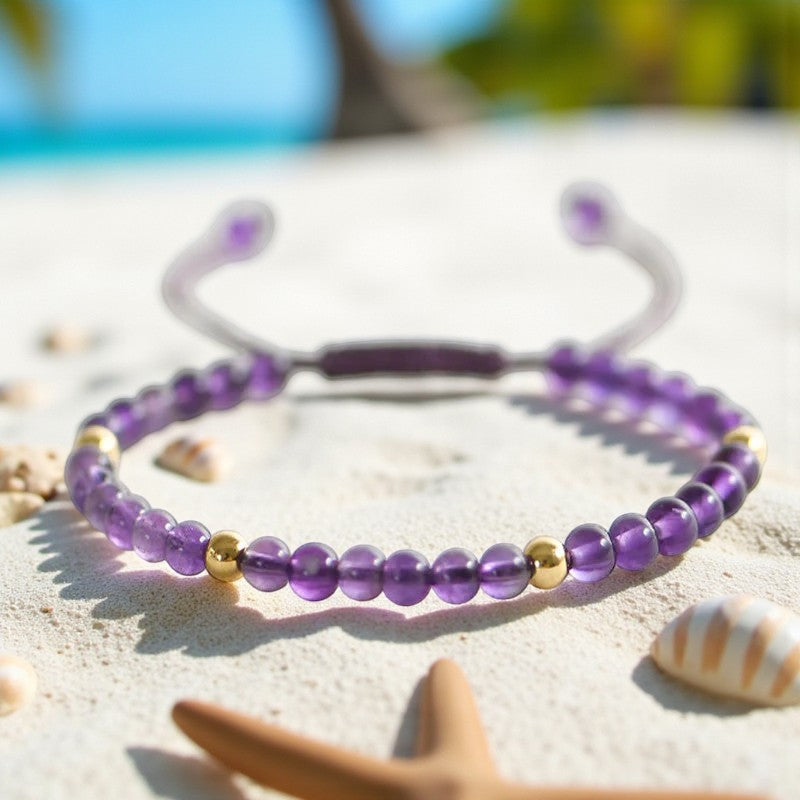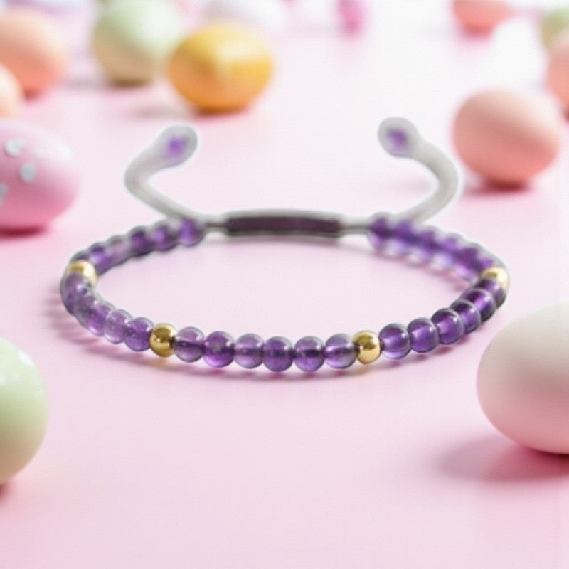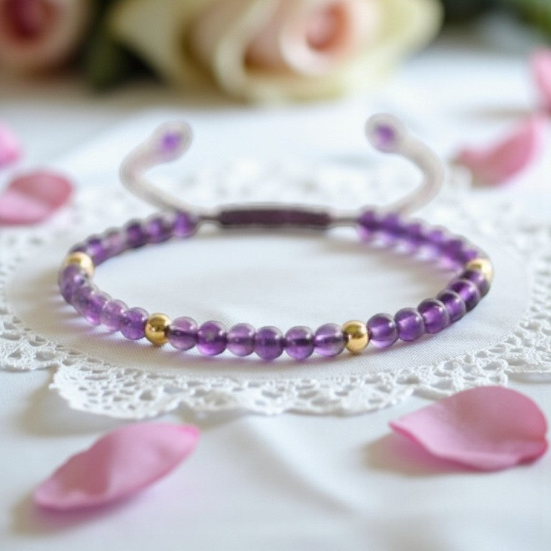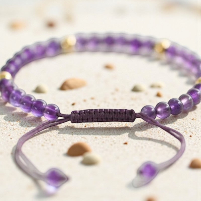 Embrace the serenity of the Enchanting Amethyst Tranquility Bracelet, meticulously handcrafted with 14k gold-plated copper beads and intricately braided string. Infused with the tranquil essence of amethyst, this exquisite bracelet serves as a beacon of calmness and stress relief, offering solace in moments of tension. Known for its profound healing properties, amethyst supports emotional equilibrium and clarity of mind, guiding you towards a state of inner peace. The intricate design and soothing energy of this bracelet work harmoniously to reduce anxiety and cultivate a peaceful mindset, making it a perfect companion for meditation and mindfulness practices. Allow the gentle energies of amethyst to envelop you in a cocoon of tranquility and elevate your spiritual journey.💜