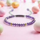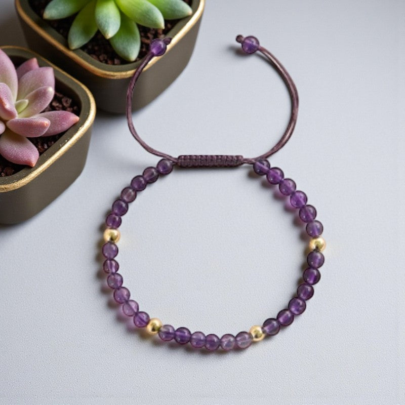 4mm Handcrafted Natural Amethyst 14k Gold Plated Copper Beads Braided String Stress Relief Bracelet