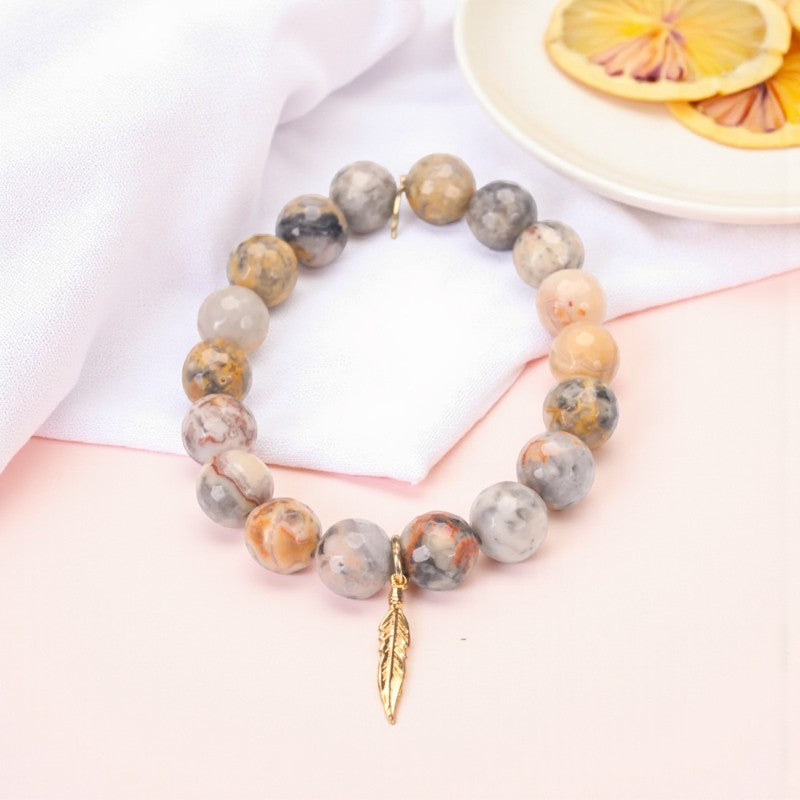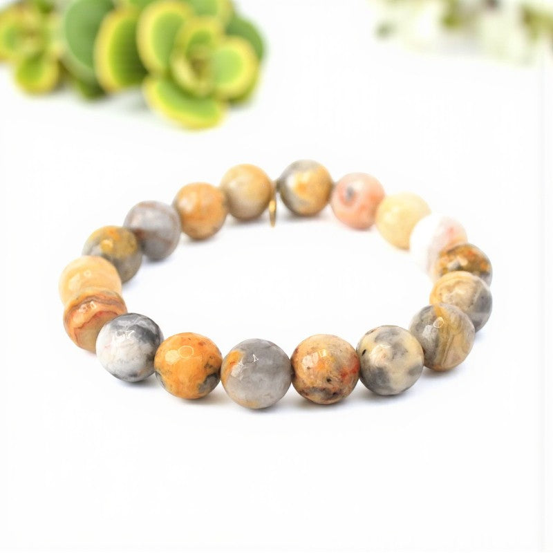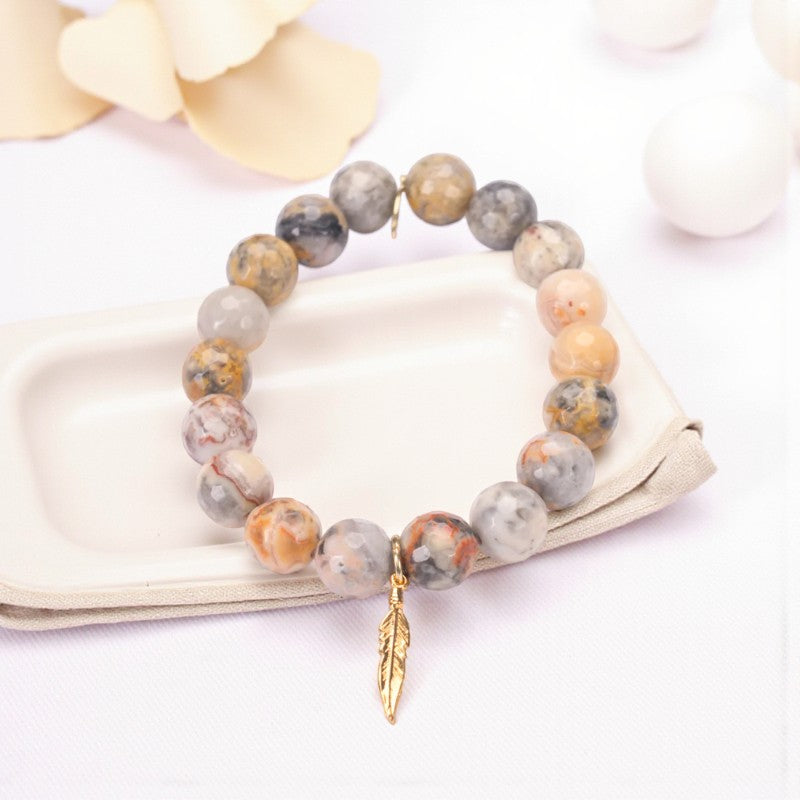 To maintain the potency of your Mexican crazy lace agate bracelet, it is essential to recharge it regularly by exposing it to sunlight and moonlight for 24 hours every couple of weeks. Treat this precious talisman with care, whether worn daily or kept within reach at night, ensuring its healing properties remain within your energetic field.