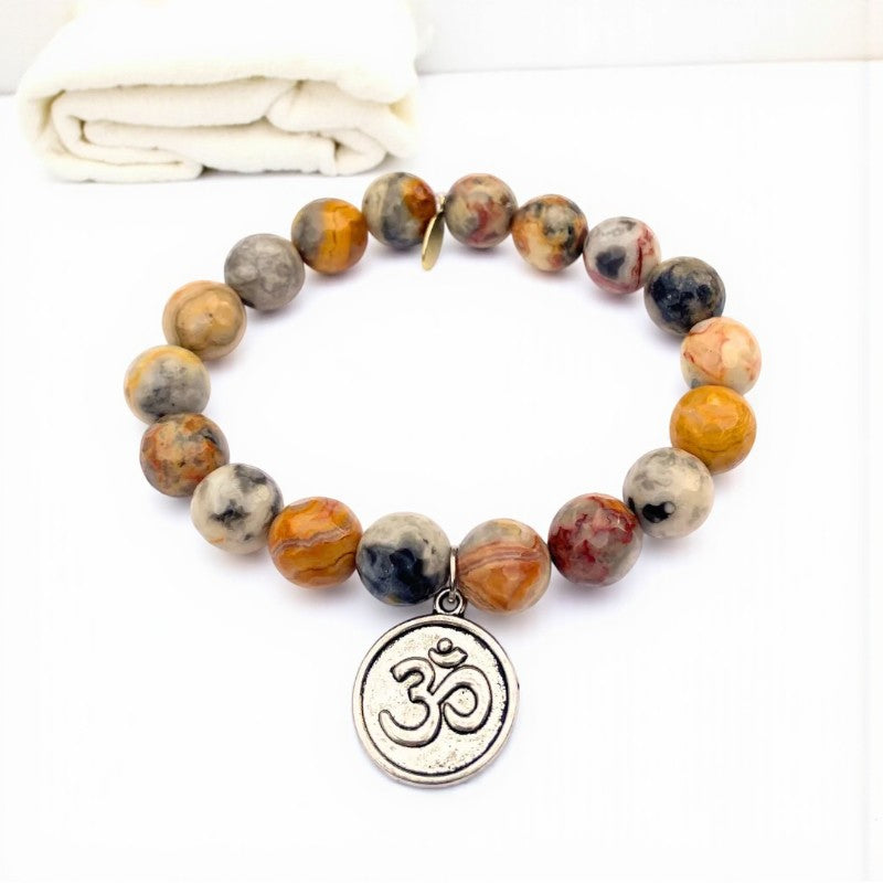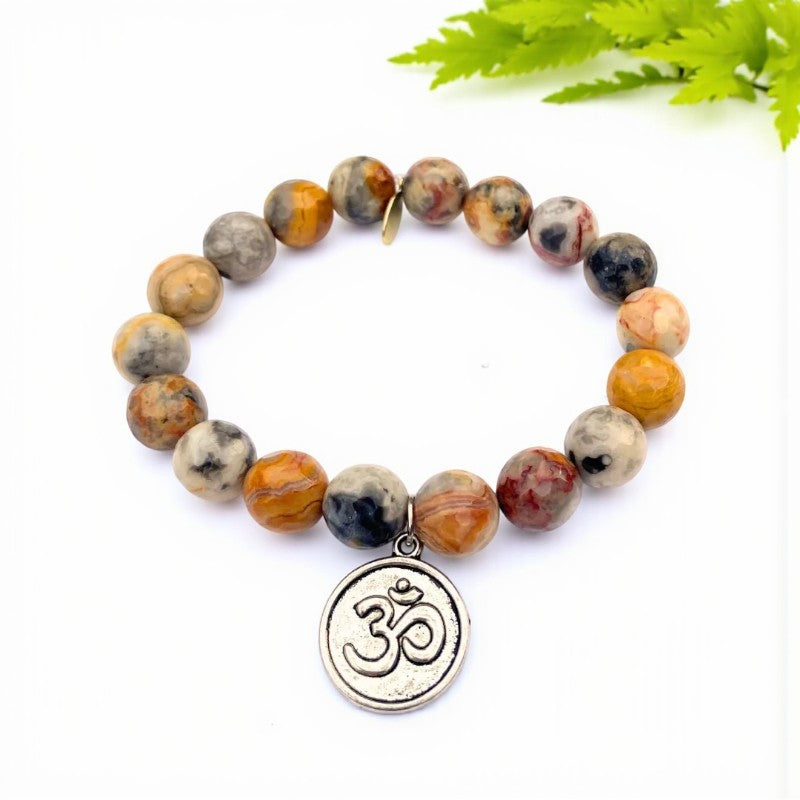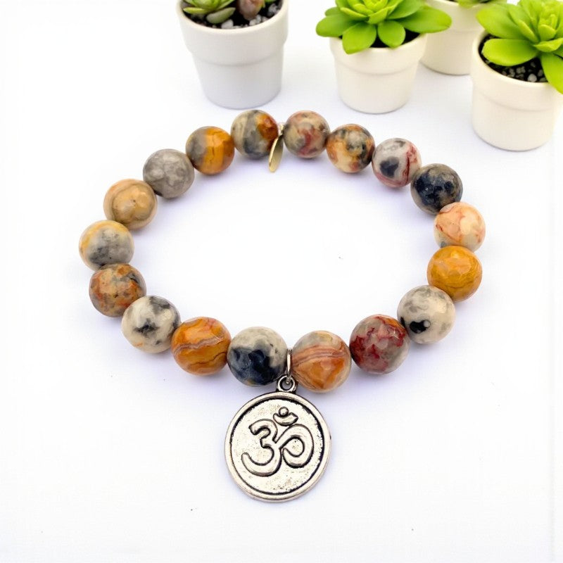 Embark on a journey of love, abundance, and inner harmony with the exquisite 10mm giraffe agate bracelet, featuring brushed gold rings and a natural gold Infinite Warrior charm. This bracelet, meticulously crafted with a strong clear elastic cord, embodies the energies of the May birthstone and resonates with the zodiac signs of Gemini and Virgo.
