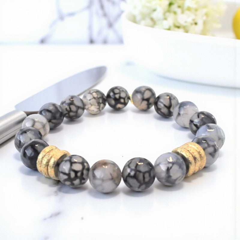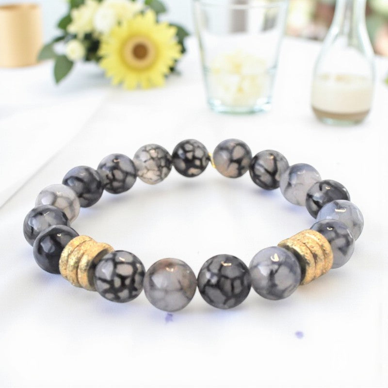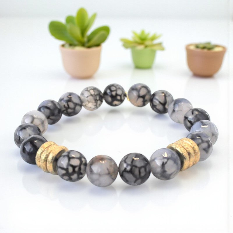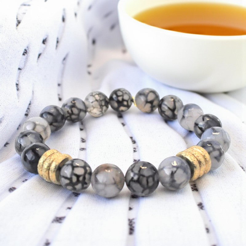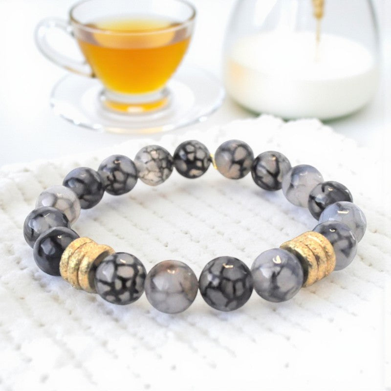 Agate Crystal Bracelet with Dragon Vein and Silver Coffee Bean