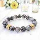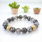 Step into a realm of love, abundance, and tranquility with the exquisite 10mm faceted dragon vein agate bracelet accented with a silver coffee bean charm and a natural gold Infinite Warrior charm. This bracelet, meticulously strung on a strong clear elastic cord, resonates with the energies of the May birthstone and harmonizes with the zodiac signs of Gemini and Virgo.