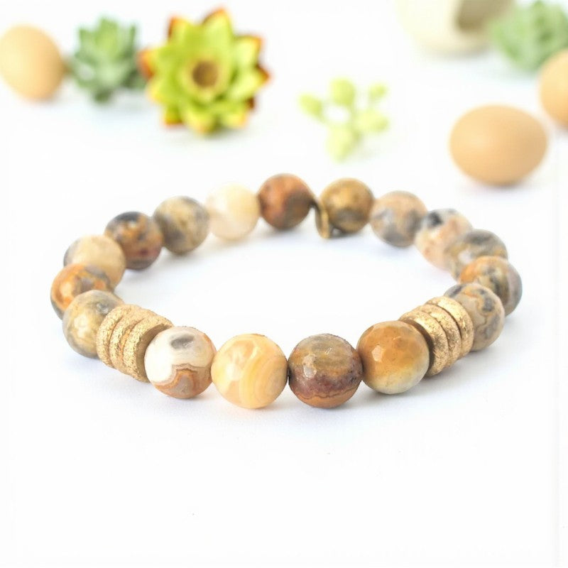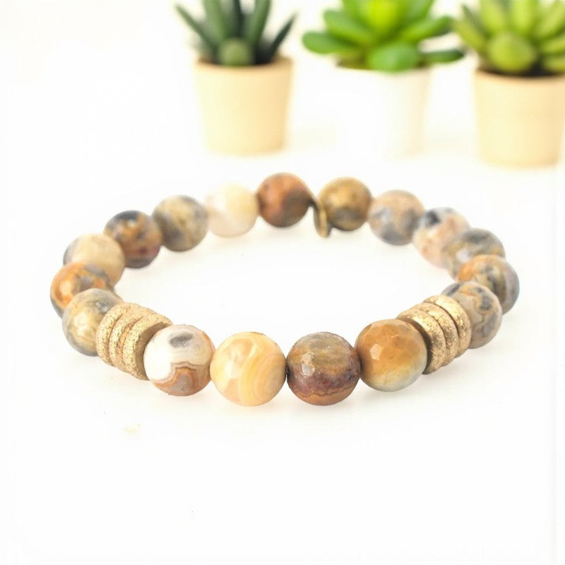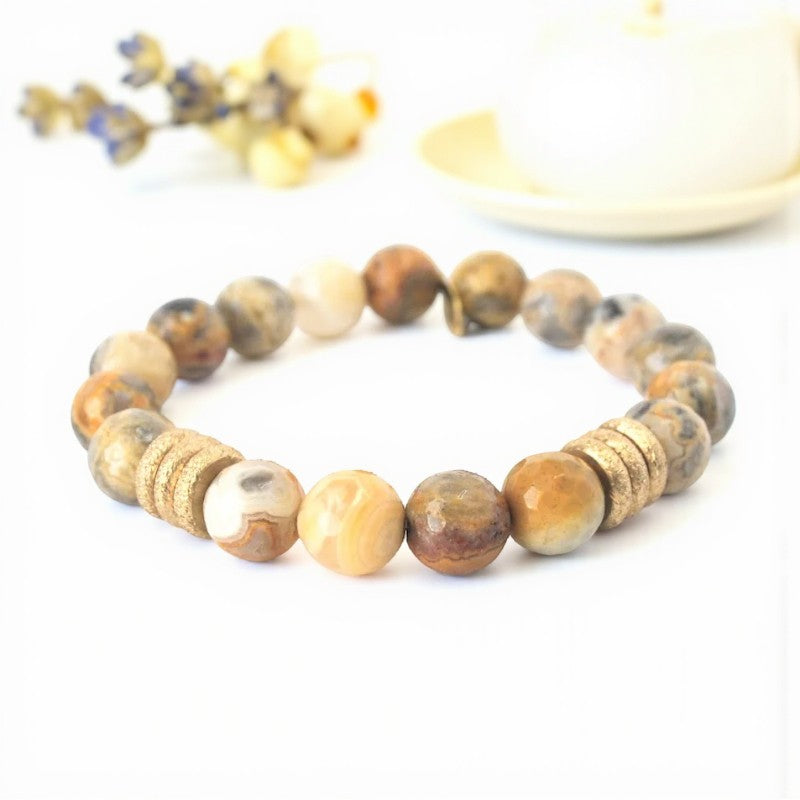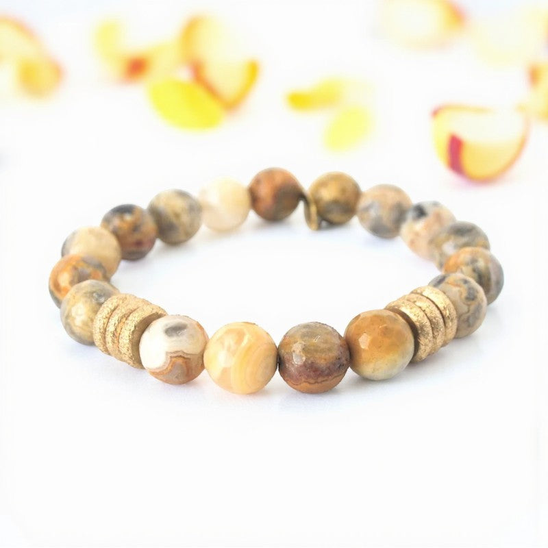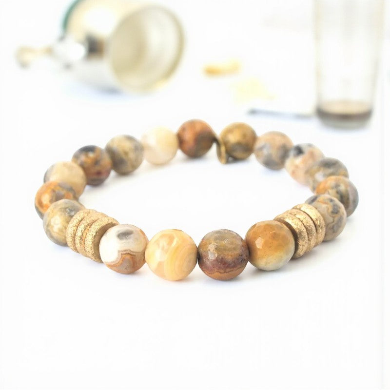 Agate Crystal Bracelet with Mexican Crazy Lace Agate and Gold Rings