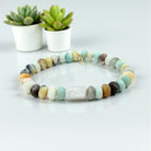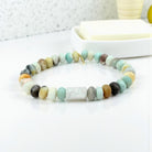 Transport yourself to a tranquil beach with the soothing presence of the Amazonite crystal bracelet, a beacon of calm amidst life's storms. Embrace its ability to quiet the mind, dispelling dark and consuming thoughts, particularly during moments of overwhelming anxiety. This stone facilitates restful sleep, allowing you to set aside the burdens of the day and awaken refreshed and rejuvenated.