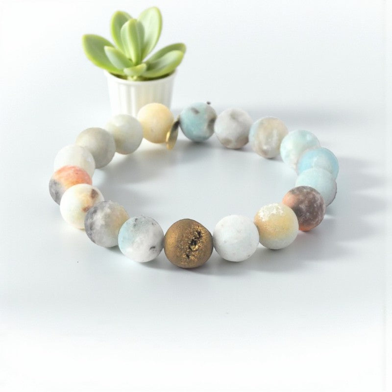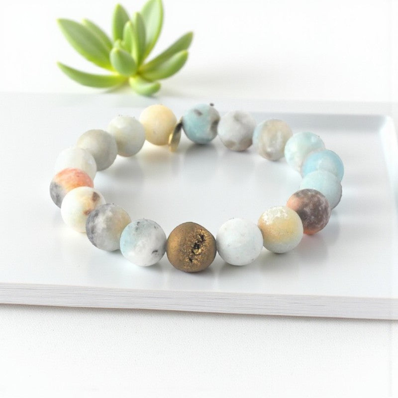 Amazonite Crystal Bracelet | Matte Finish with Golden Druzy Accent