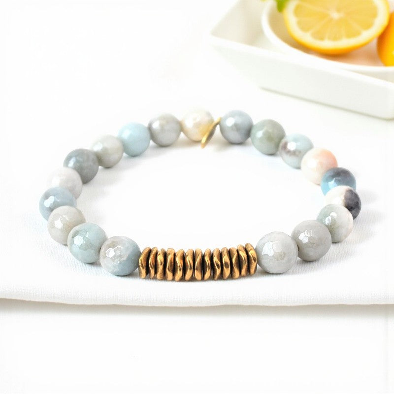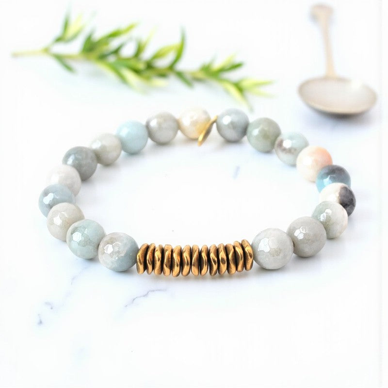Amazonite Crystal Bracelet | Mystical Aura with Brass Accents