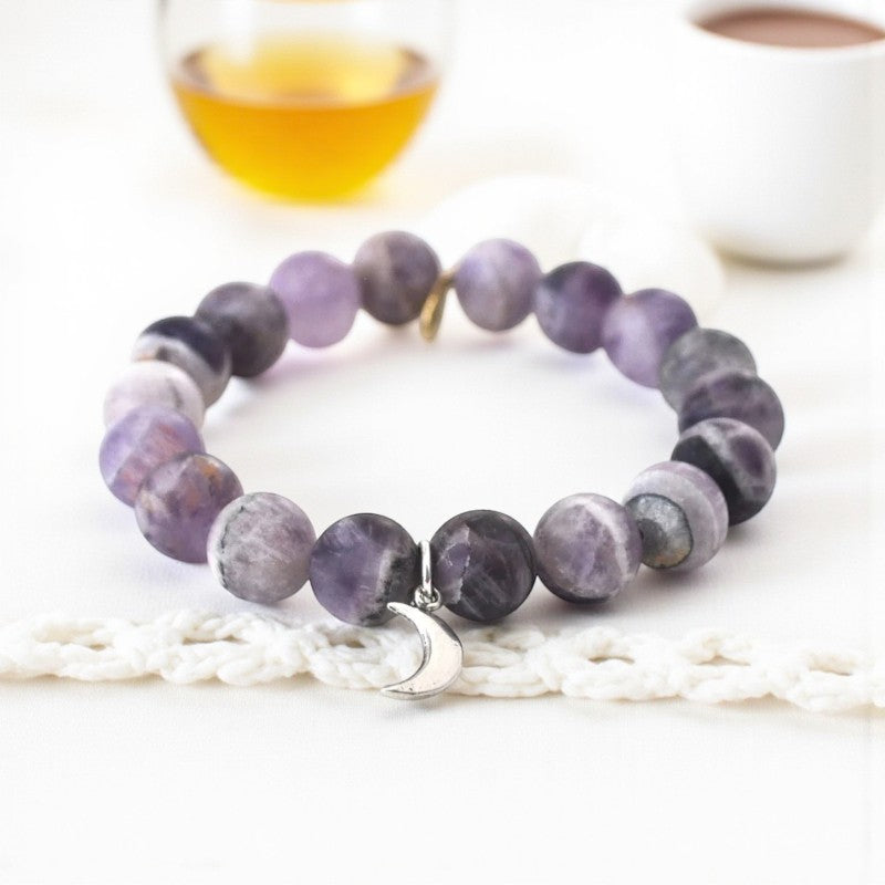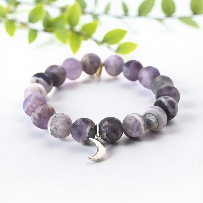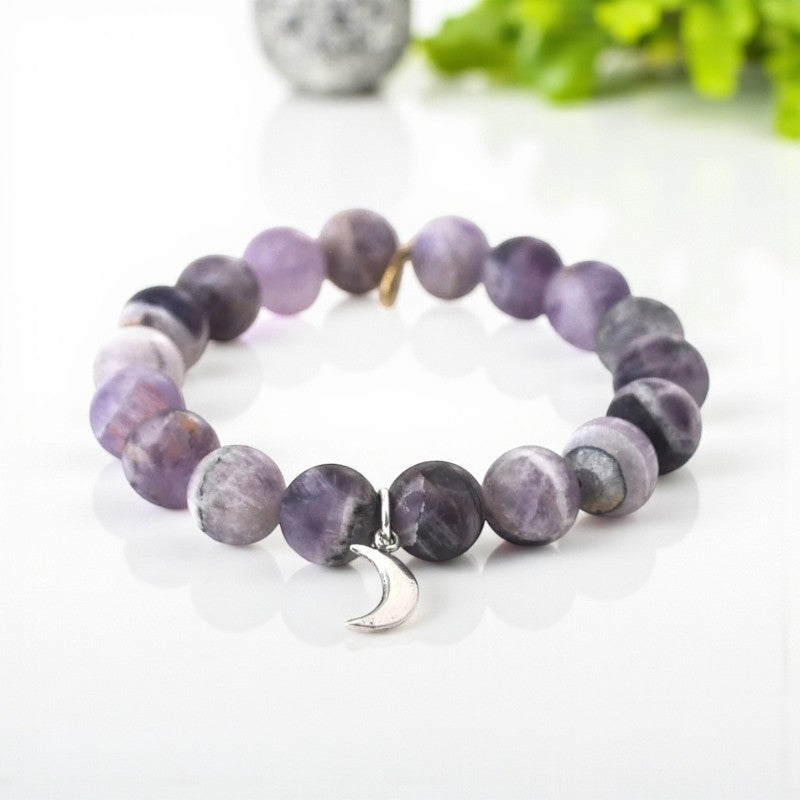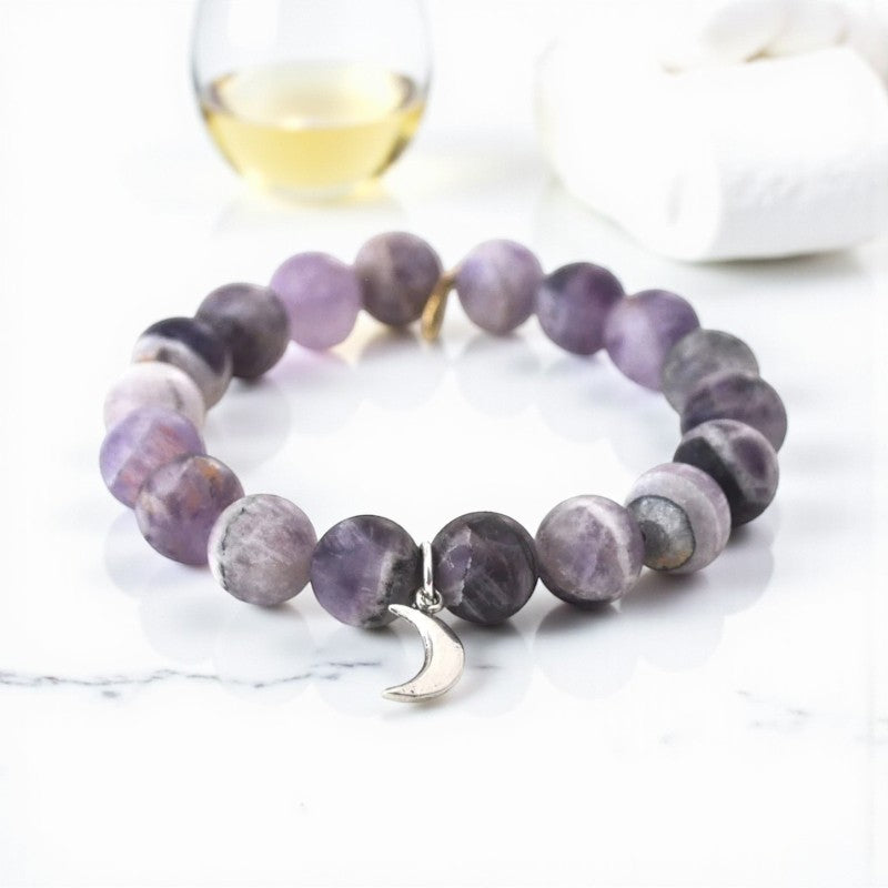 Amethyst Crystal Bracelet | Silver Crescent Moon Charm