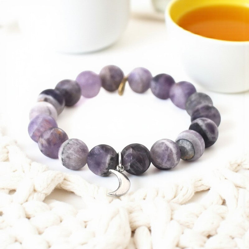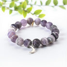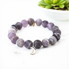The 10mm matte frost amethyst bracelet adorned with a sterling silver moon charm is a captivating piece that resonates with the energies of the Crown and Third Eye Chakras. As the February birthstone, it holds a special significance for those born under the signs of Virgo, Sagittarius, Capricorn, Aquarius, Leo, and Pisces. This bracelet not only exudes elegance but also offers a wealth of healing properties.