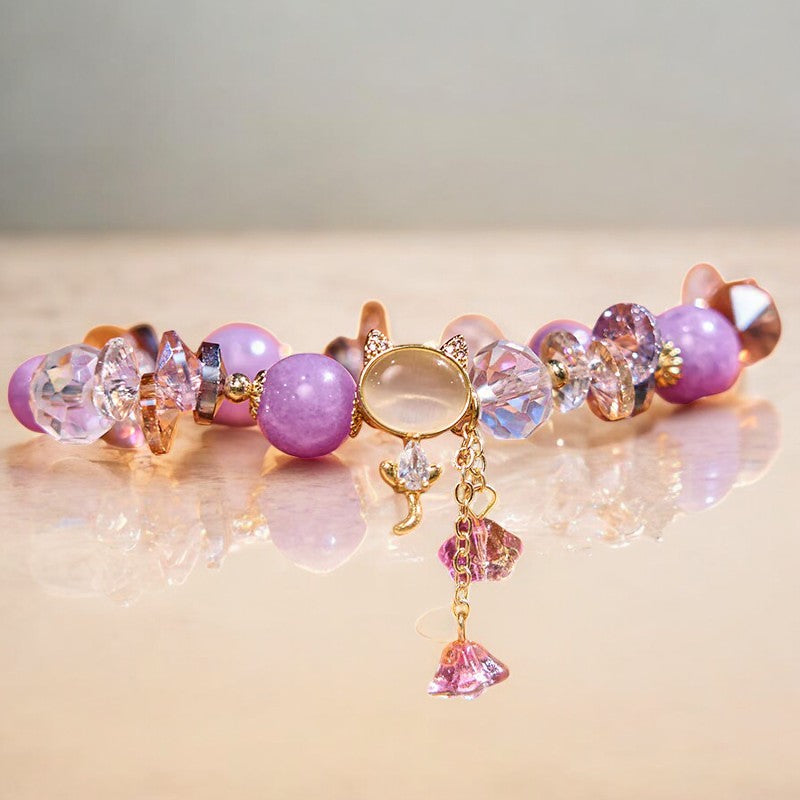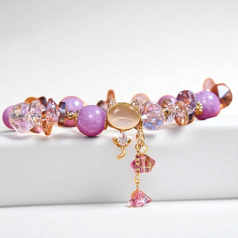 Amethyst Green Crystal Red Crystal Cat Balance Bracelet