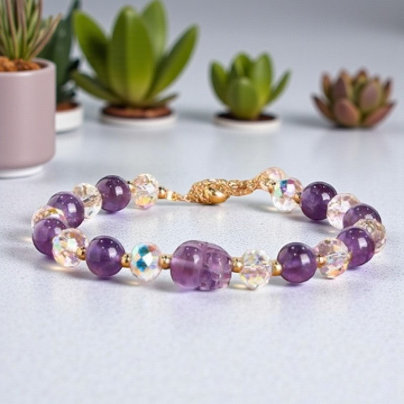 Experience the harmonious blend of Amethyst and in the Mystic Harmony Amethyst Bracelet, a symbol of spiritual growth, protection, and prosperity. Let the powerful energies of these crystals infuse your being with tranquility and balance, paving the way for a life filled with positivity and abundance. Wear this bracelet as a talisman of harmony and grace, and invite the blessings of Amethyst and into your life. 🌟🔮