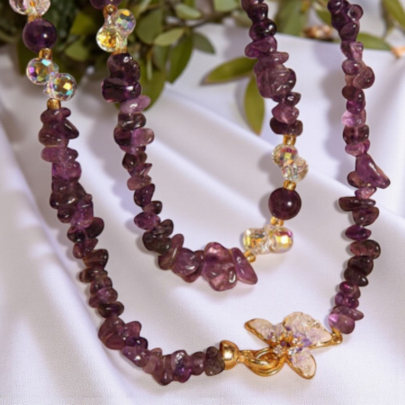Amethyst, Strawberry Quartz Butterfly Flower Balance Necklace Pendant
