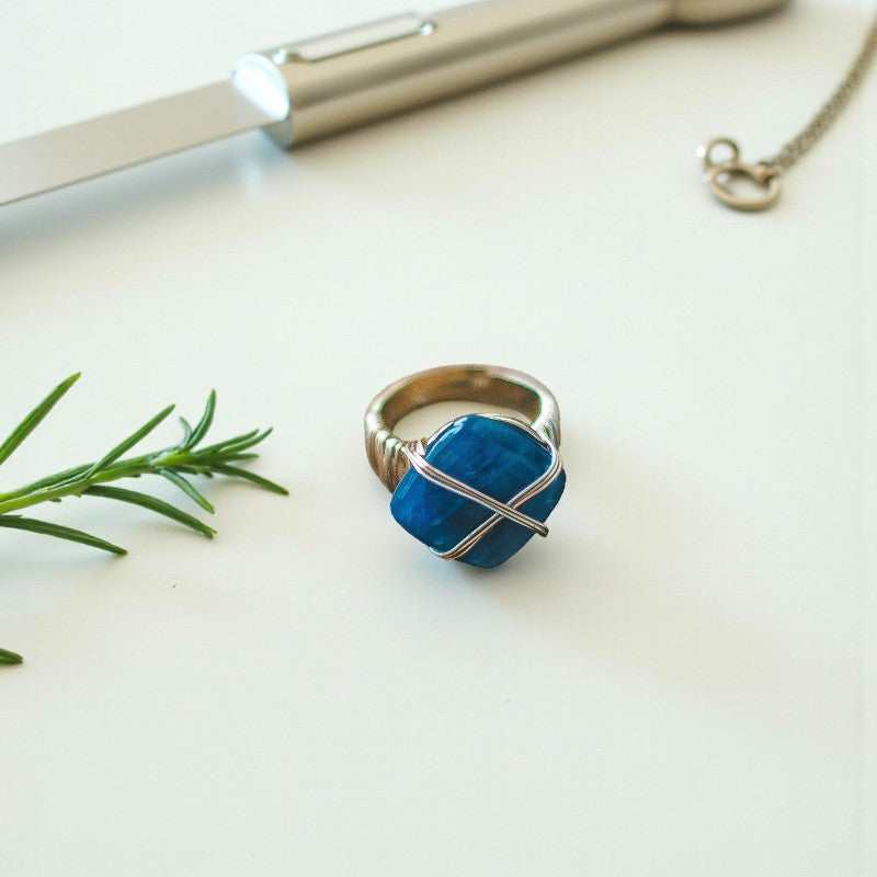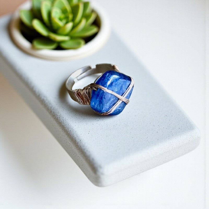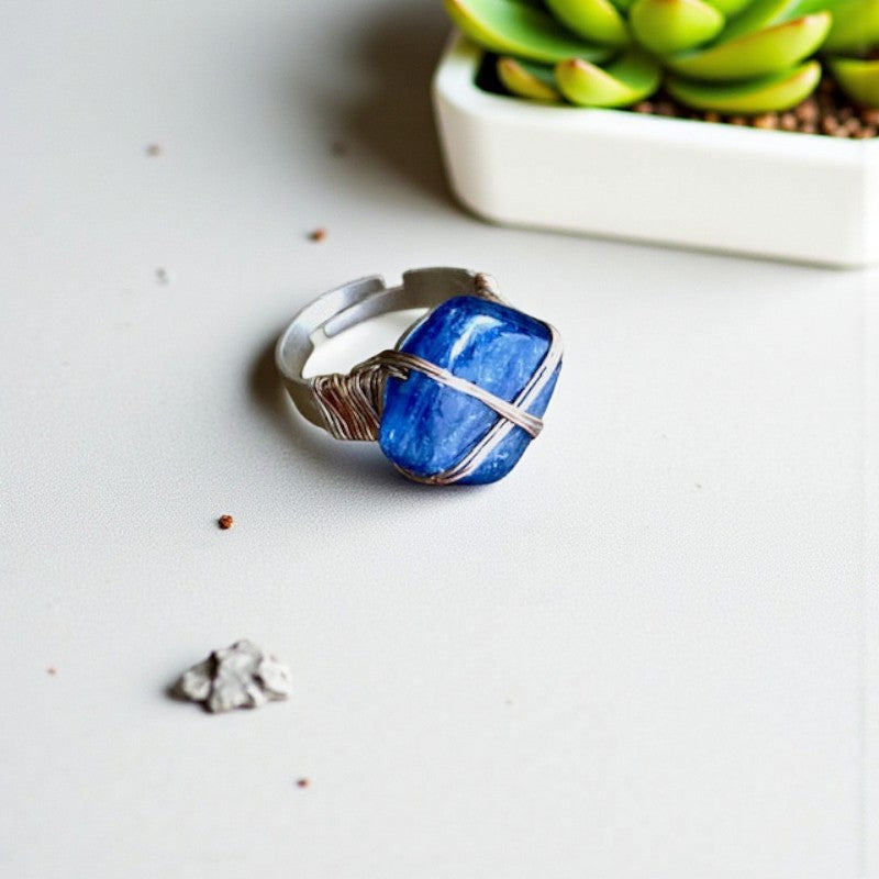 Experience the harmonious blend of style and spirituality with our Blue Kyanite Ring, tailored for individuals leading dynamic lifestyles. This remarkable stone not only fosters inner equilibrium but also acts as a shield against negative energies, making it an ideal companion for those navigating busy schedules.