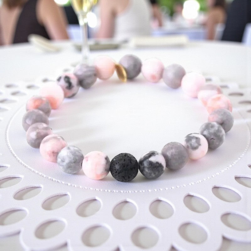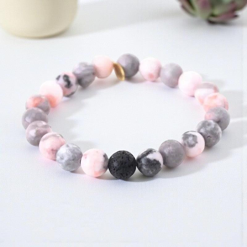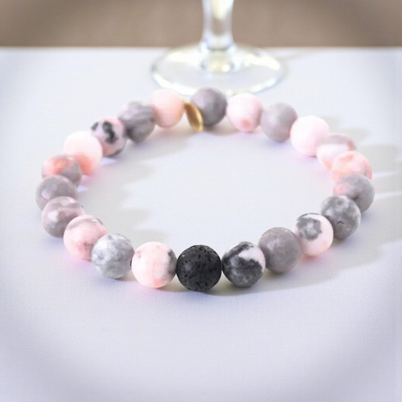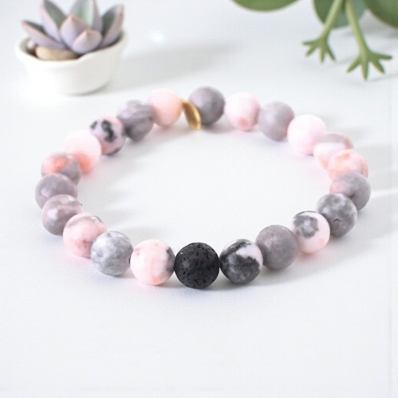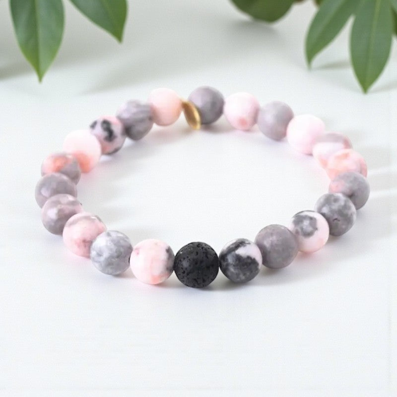 Blush Zebra Jasper Stone Bracelet with Lava Beads for Essential Oil Diffusion