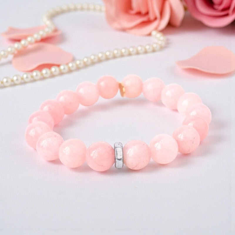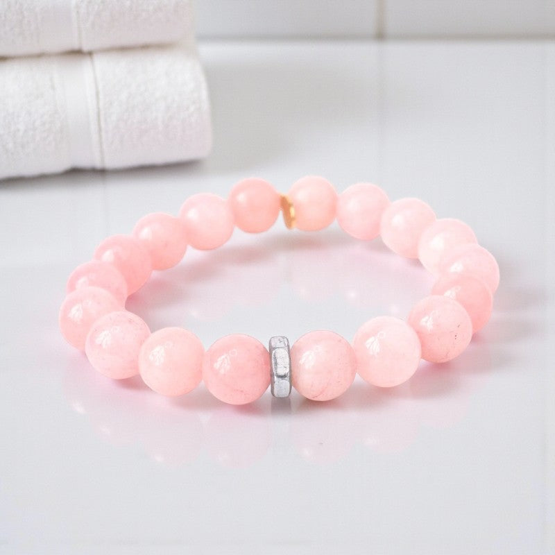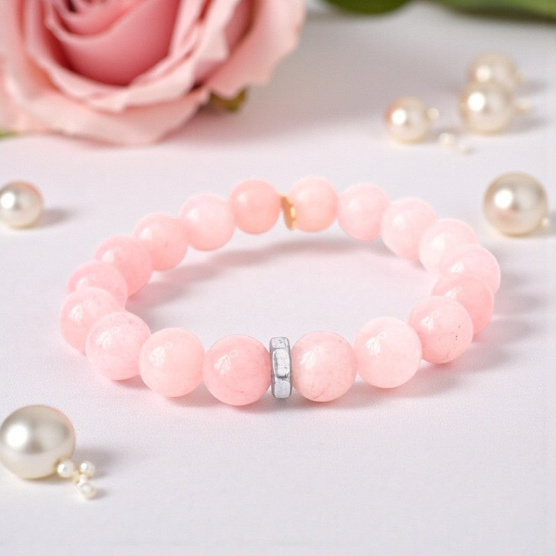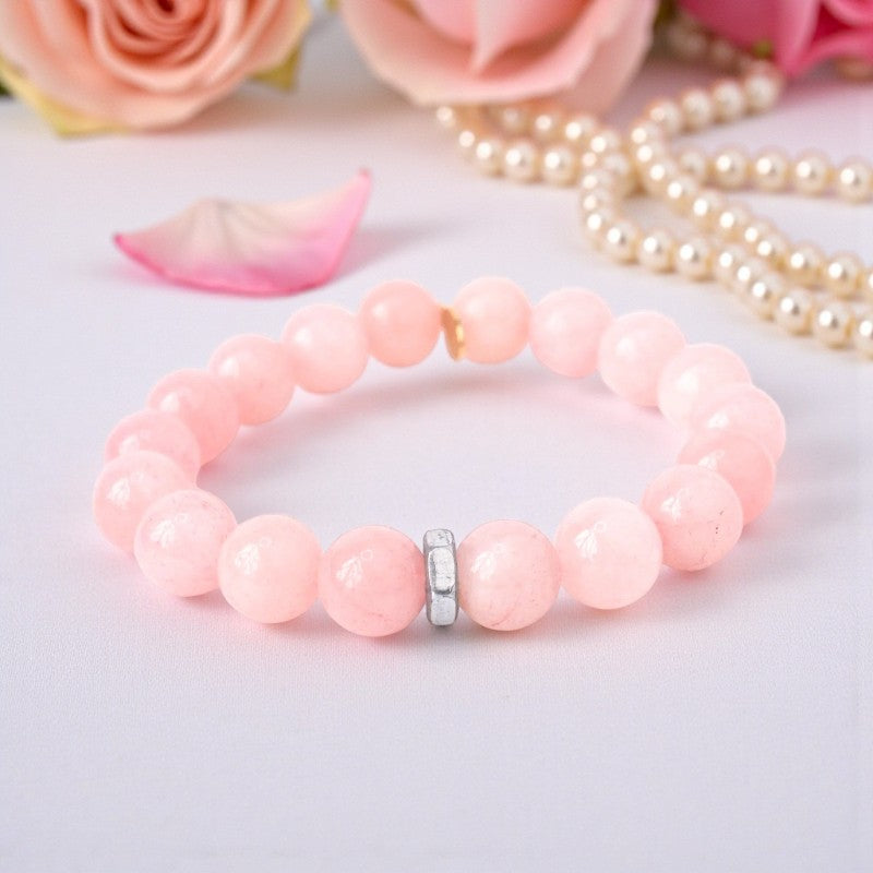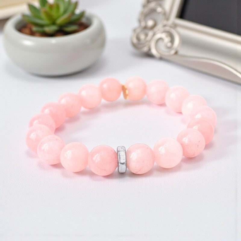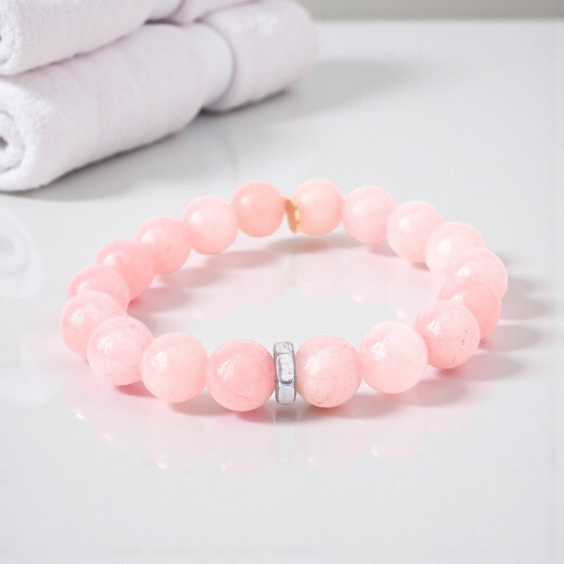 Blushing Elegance | Rose Quartz Bracelet with Silver Hex Nut
