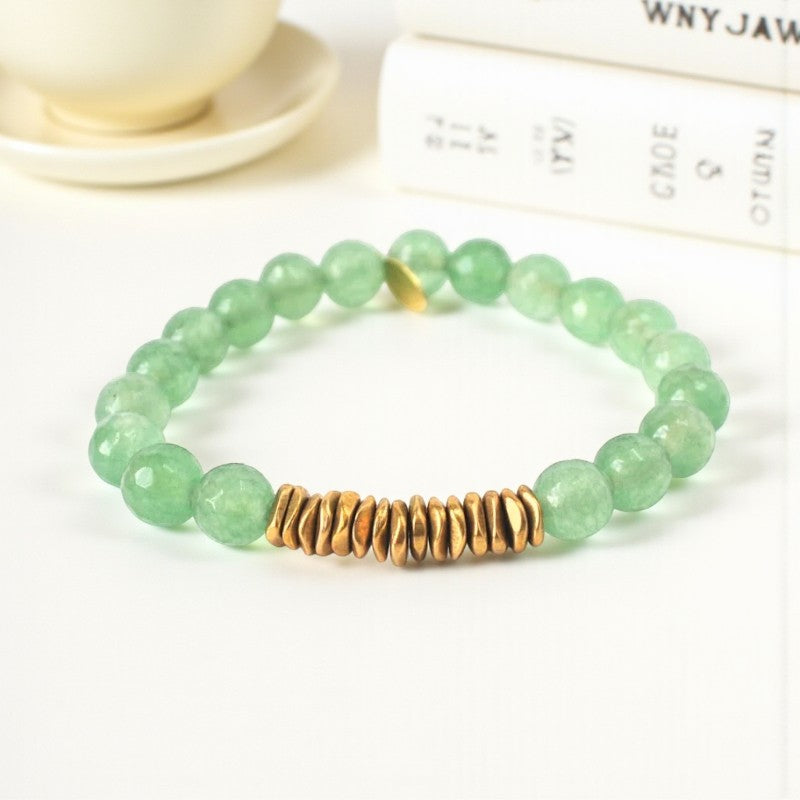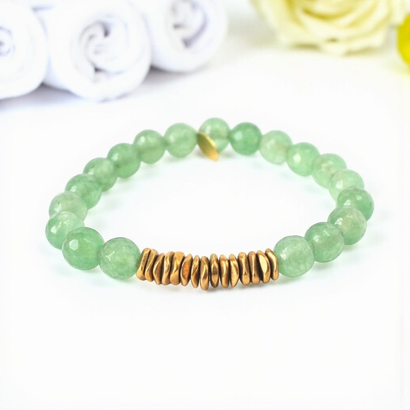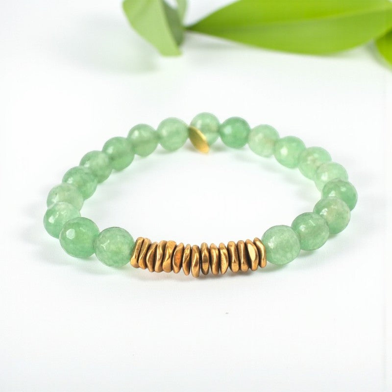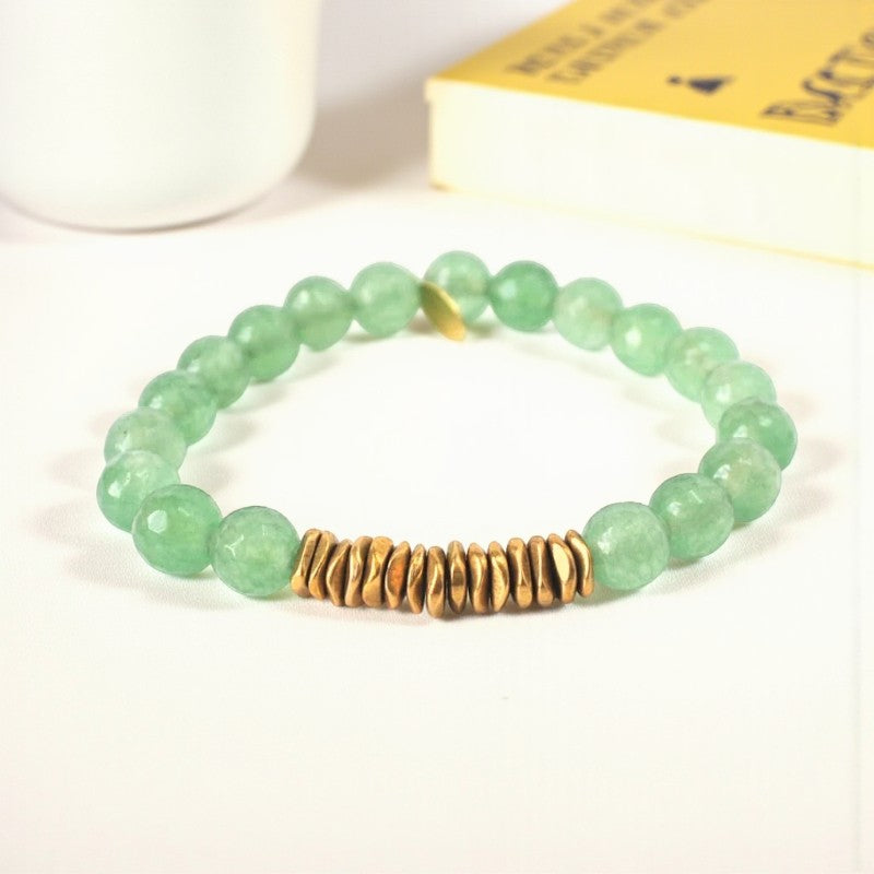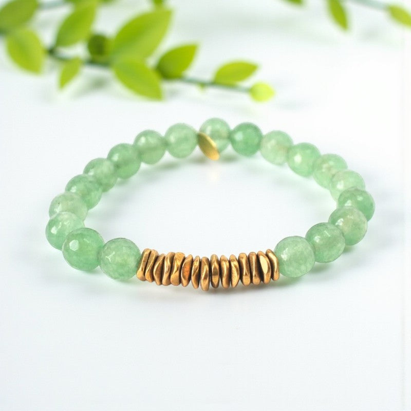 Embark on a journey of emotional healing and balance with the exquisite Heart Chakra Healing Bracelet, featuring 8mm faceted Jade beads adorned with a row of brass Heishi beads. This bracelet is thoughtfully designed for individuals born under the signs of Aries, Taurus, Gemini, and Libra, offering a harmonious fusion of serenity, protection, and self-sufficiency.