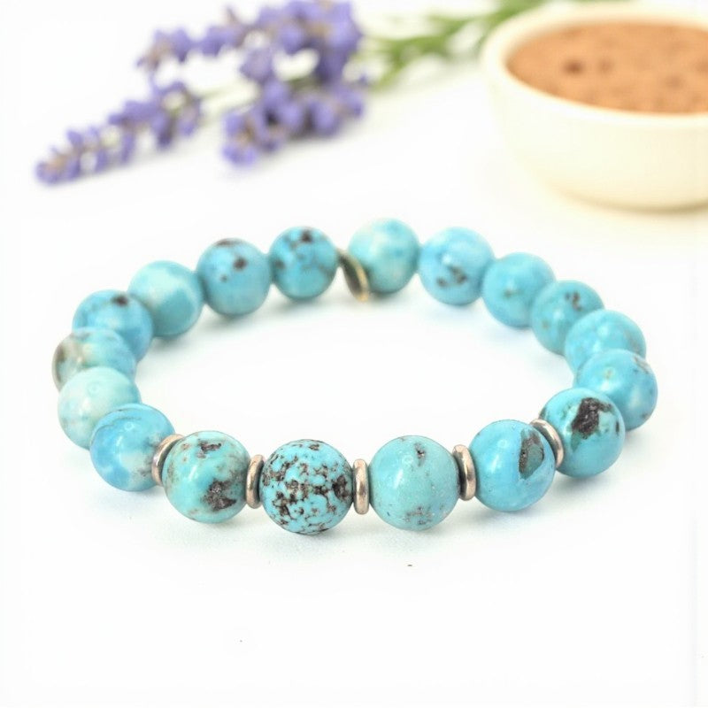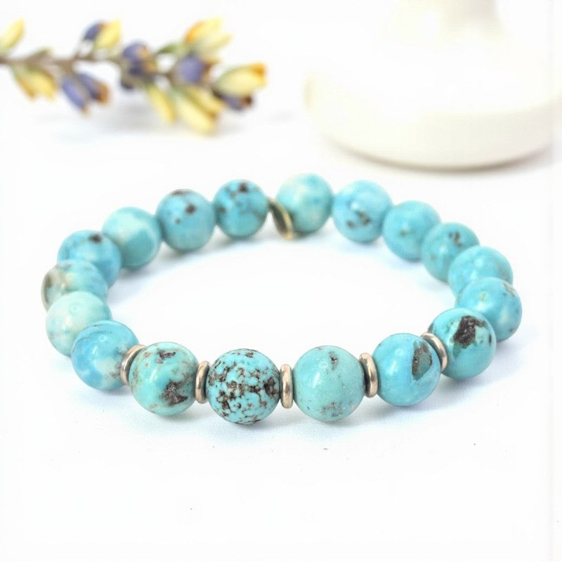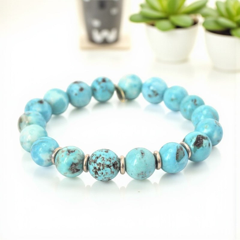 Wearing a turquoise bracelet not only balances and heals your chakras but also instills inner calm, stabilizes mood swings, and fosters serenity, protection, positive thinking, wisdom, and balance. Known as a friendship stone that stimulates romantic love, turquoise enhances emotional connections and fosters a sense of harmony and understanding.