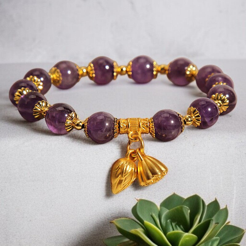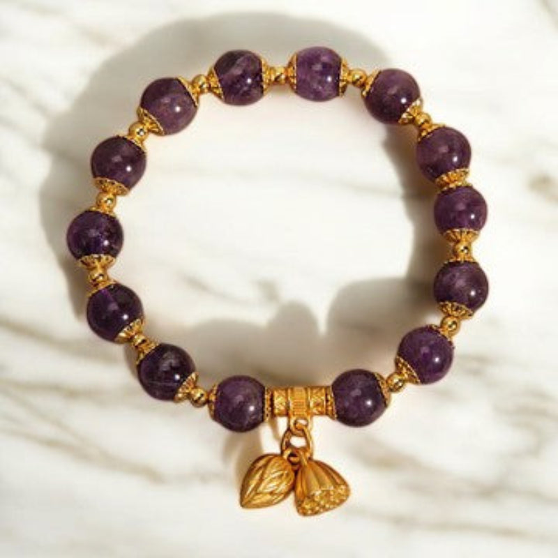 Healing Spiritual Bracelet with Natural Amethyst Lotus