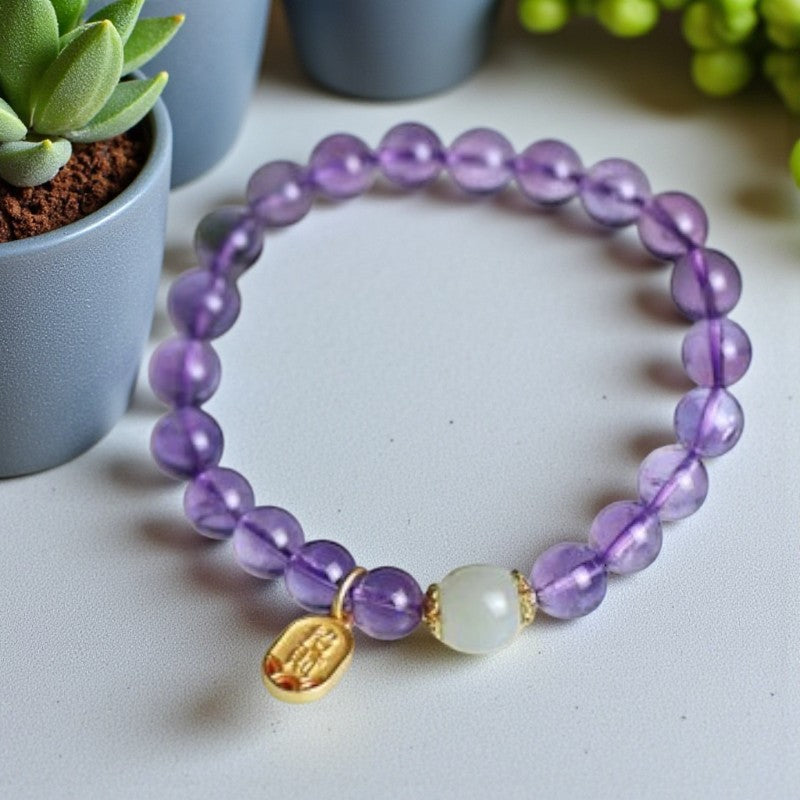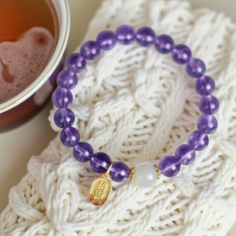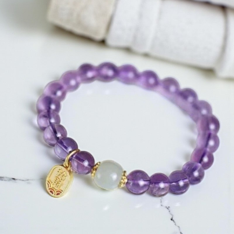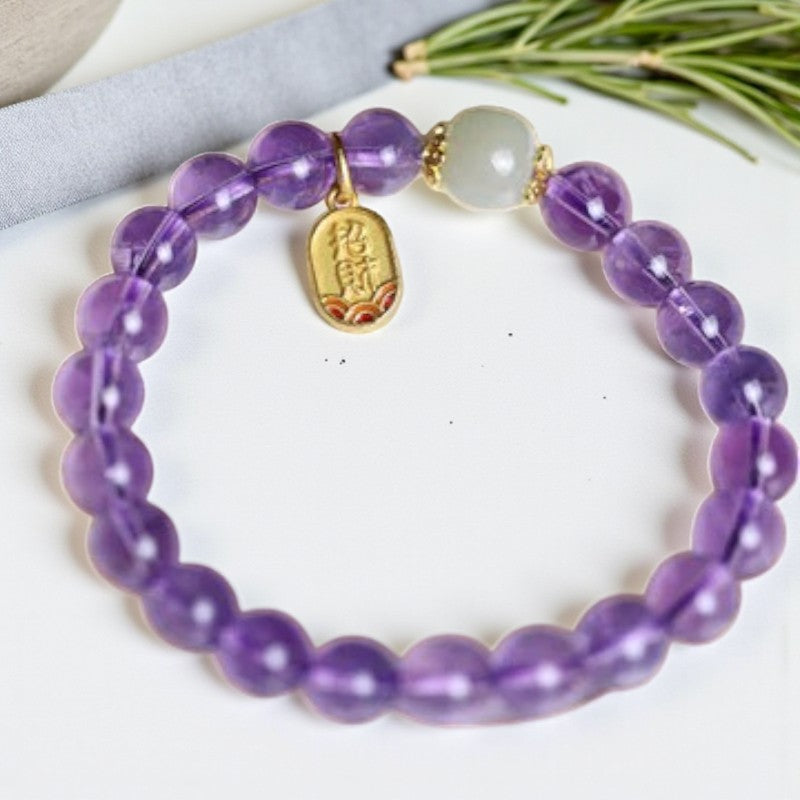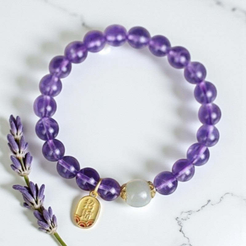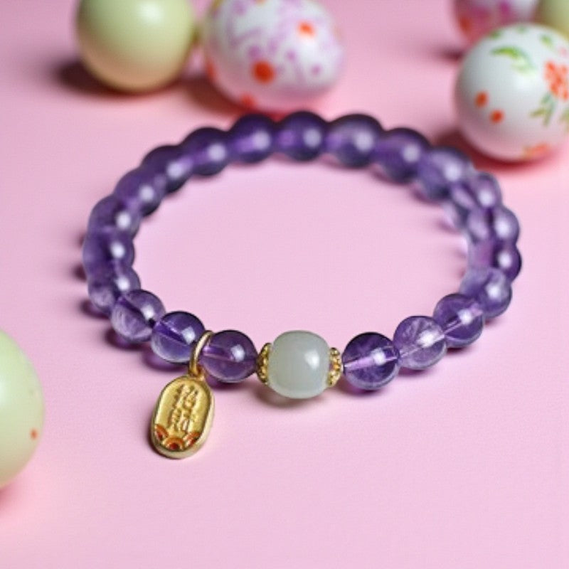 Healing Charm Bracelet with Natural Amethyst Crystal and Hetian Jade