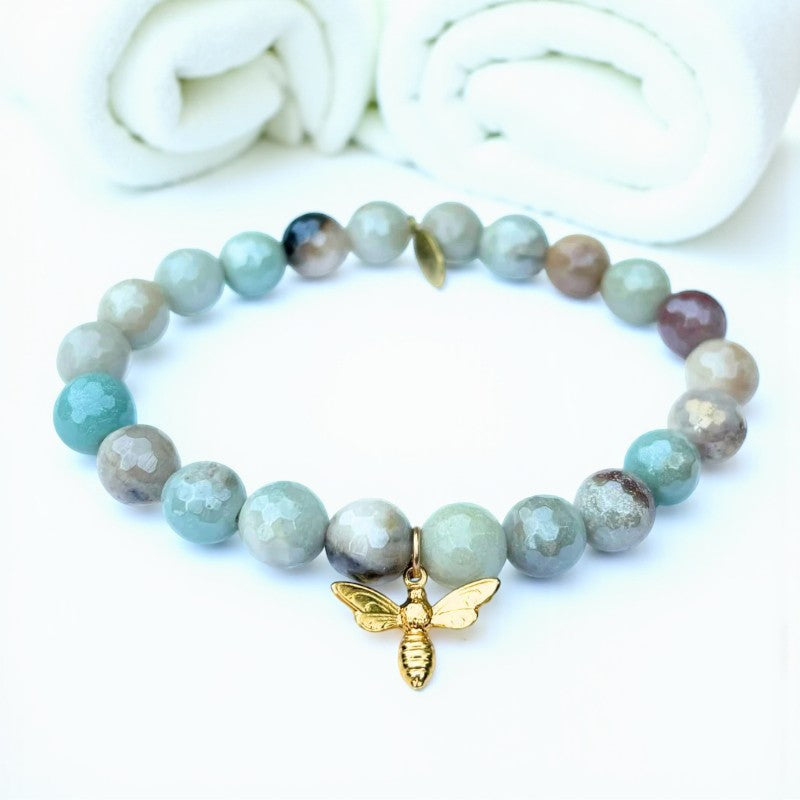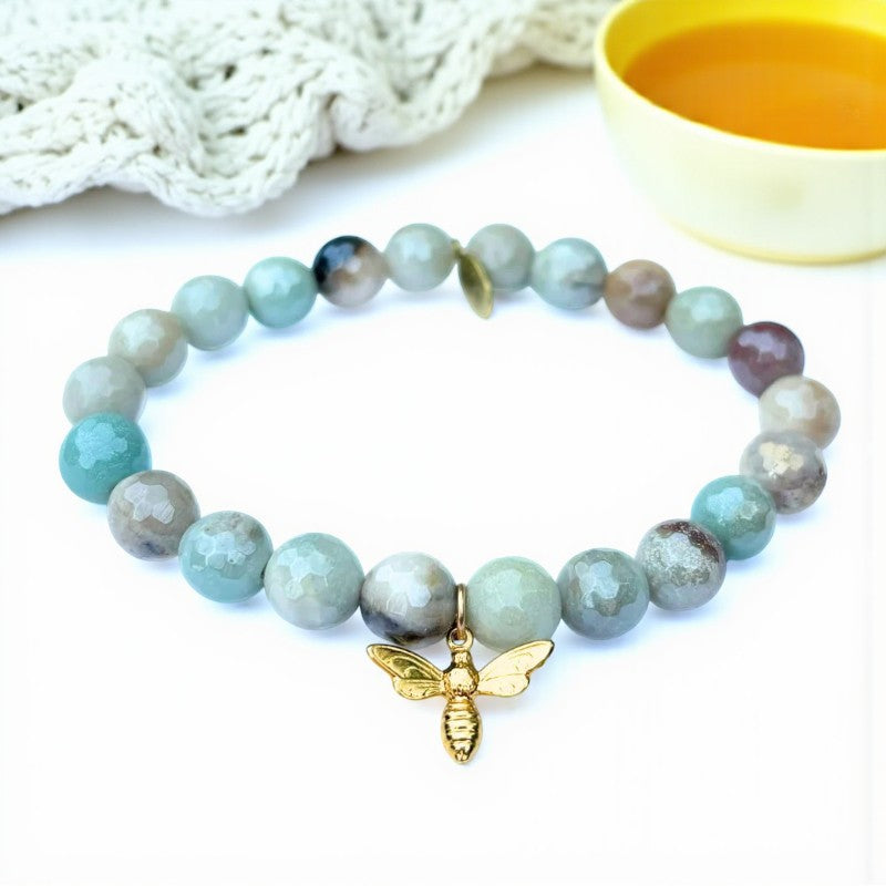 Buzzing Bee Charm | Amazonite Crystal Bracelet with Gold Bee Accent