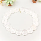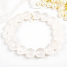 Step into a realm of serenity with the 10mm polished clear quartz bracelet adorned with a brass Om charm, meticulously crafted to harmonize and heal your Crown Chakra. Each bracelet is a symbol of tranquility, designed with clear quartz, revered as the "master healer," known for magnifying intentions, cleansing the soul, and promoting overall balance and well-being.