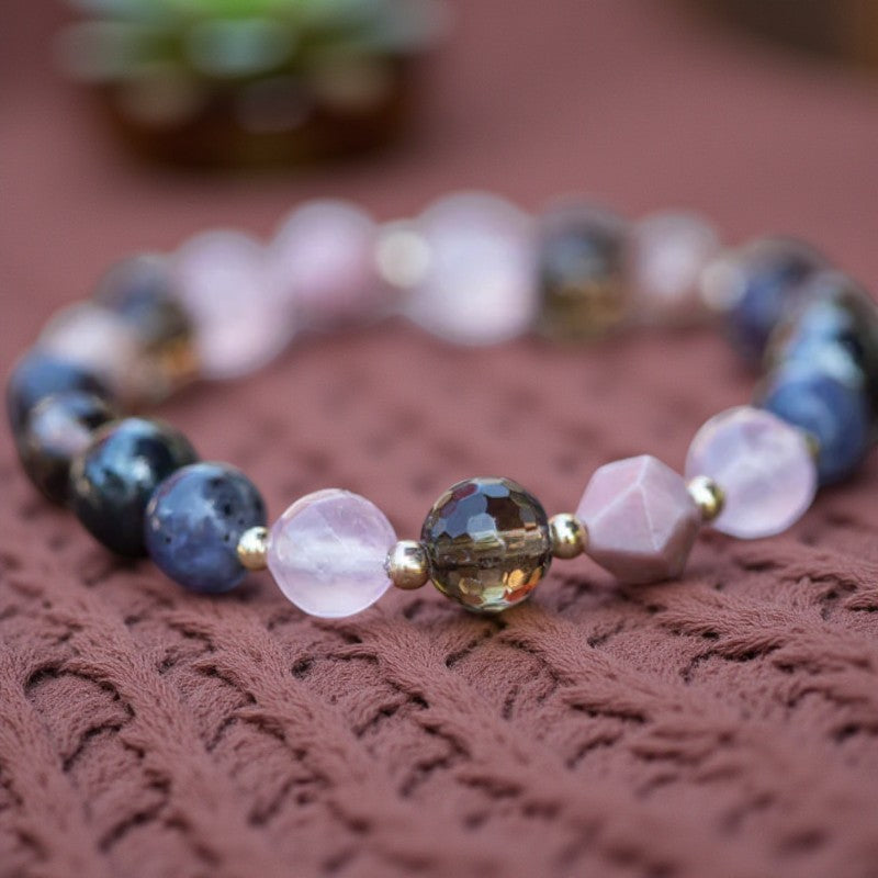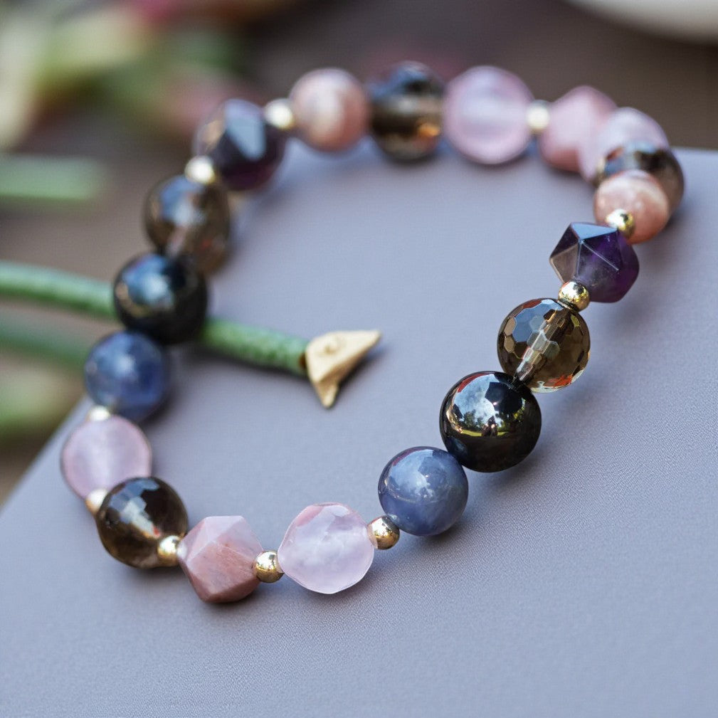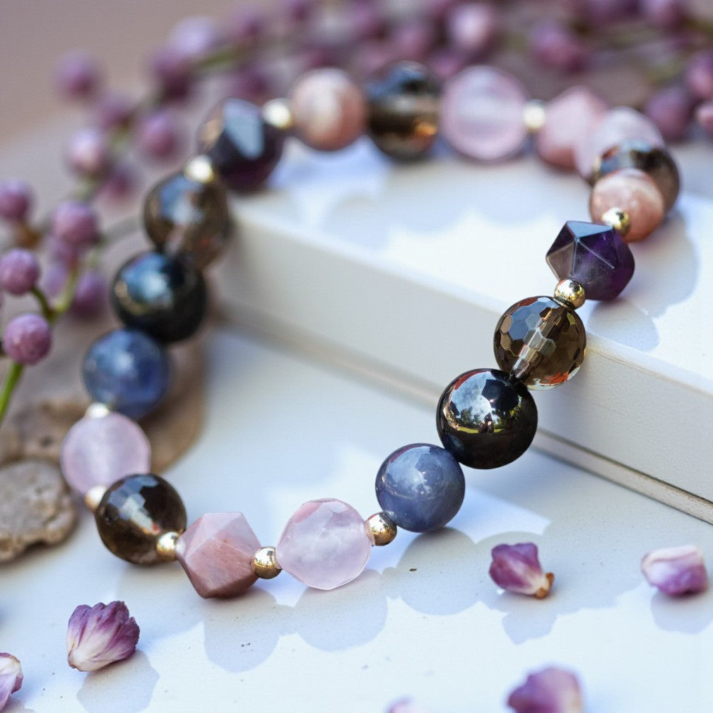 The captivating star-cut Rhodonite stones, with their pinkish hue, symbolize compassion and emotional balance. They aid in clearing emotional wounds, nurturing love, grounding energy, balancing yin-yang energies, and unlocking one's highest potential. Rhodonite strengthens tissues, organs, and glands, supporting the flow of vital energy through the body's meridians and directing it to the endocrine system. It plays a crucial role in detoxification processes, particularly supporting liver health and vitality.