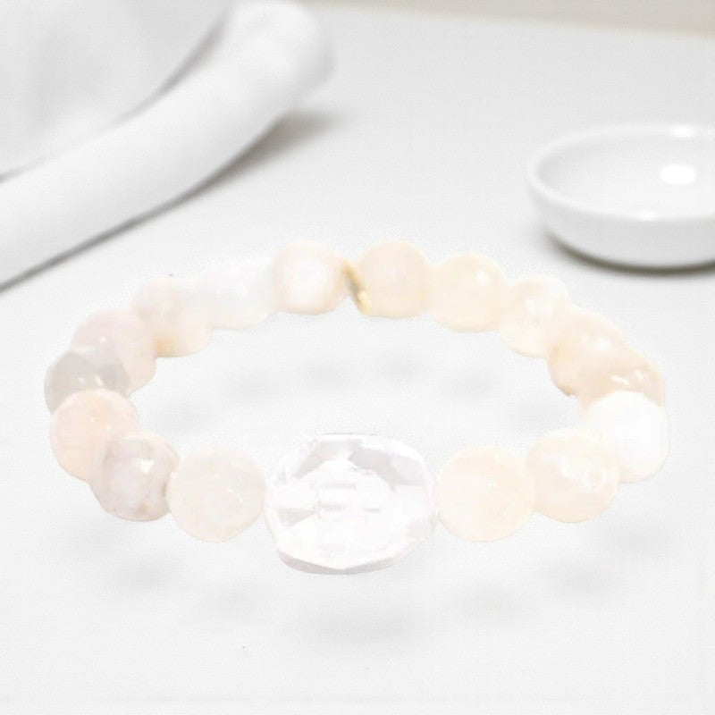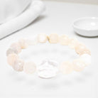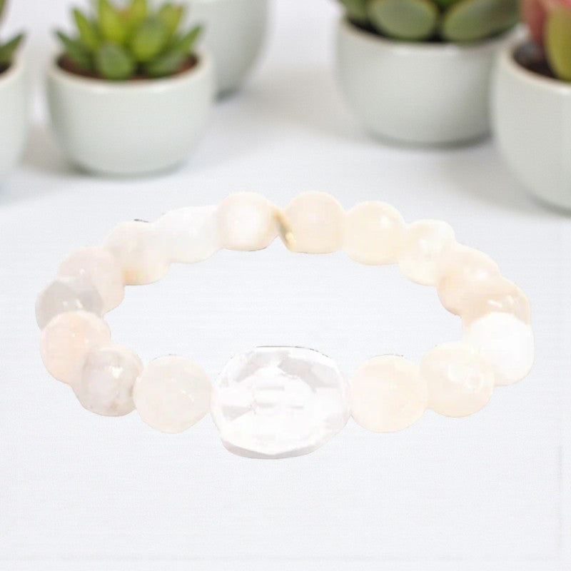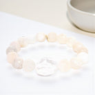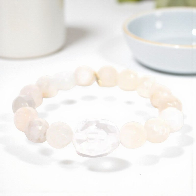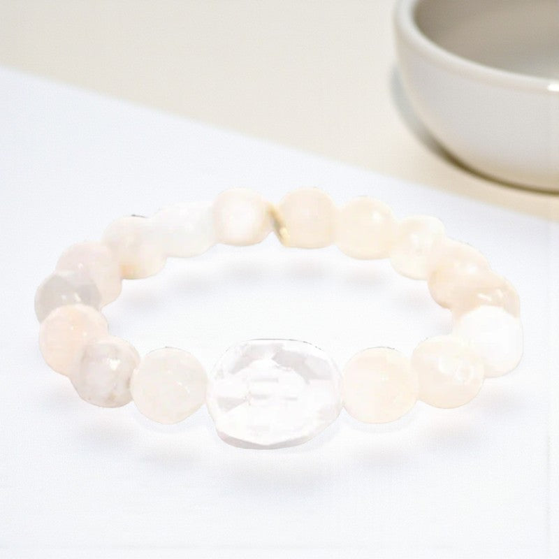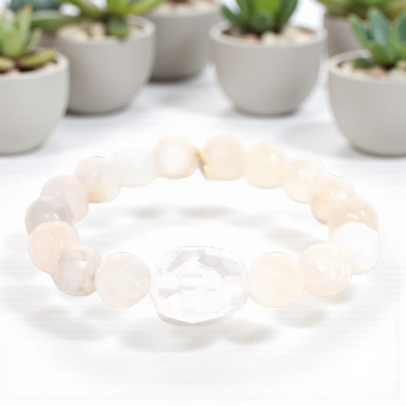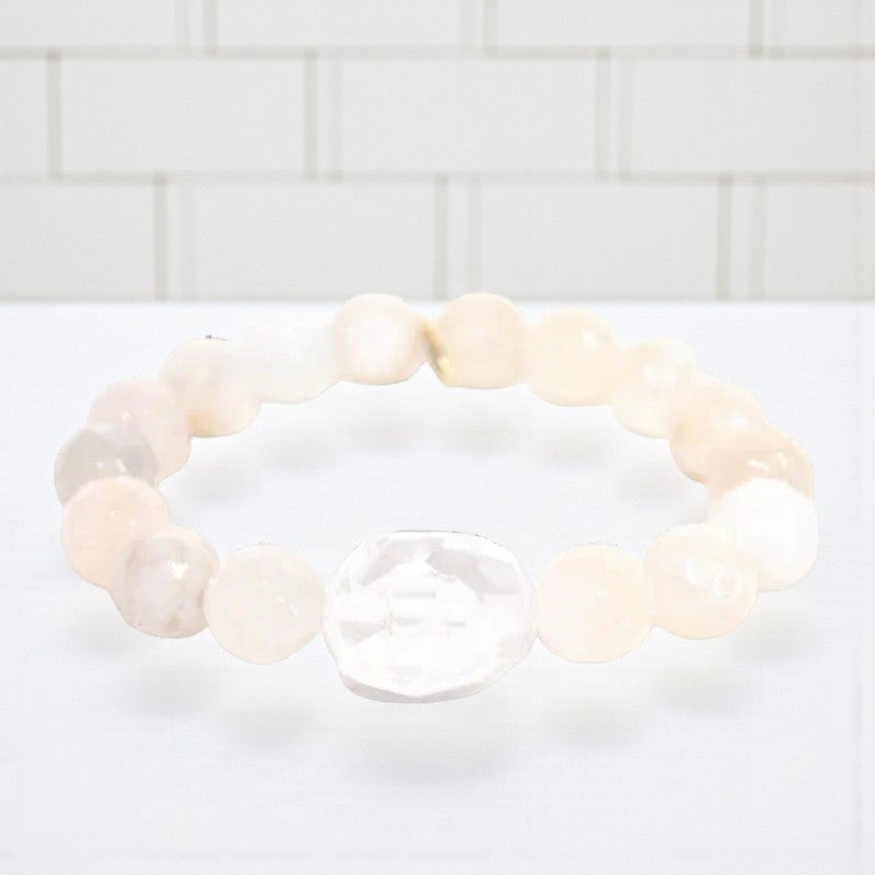Cream Faceted Moonstone Bracelet with Clear Quartz Center Stone