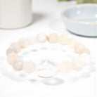 Embrace the transformative energies of the Cream Moonstone and Clear Quartz Bracelet as it guides you towards harmony, healing, and new beginnings. Allow its nurturing vibrations to support your emotional well-being, fertility, and spiritual growth, enhancing your intuition and inner strength. Wear this bracelet as a symbol of balance, self-trust, and forgiveness, and experience the profound impact of Moonstone and Clear Quartz on your journey to holistic well-being and inner harmony.