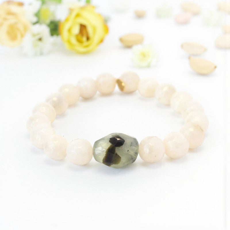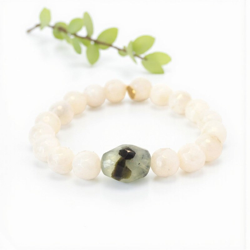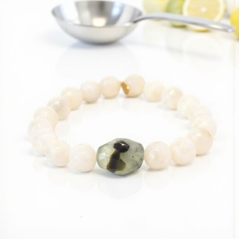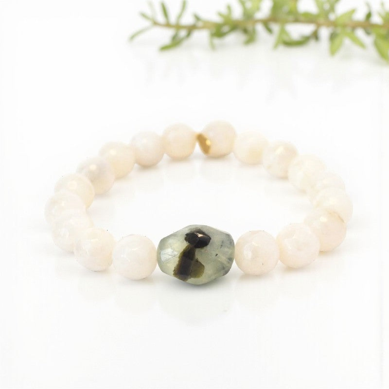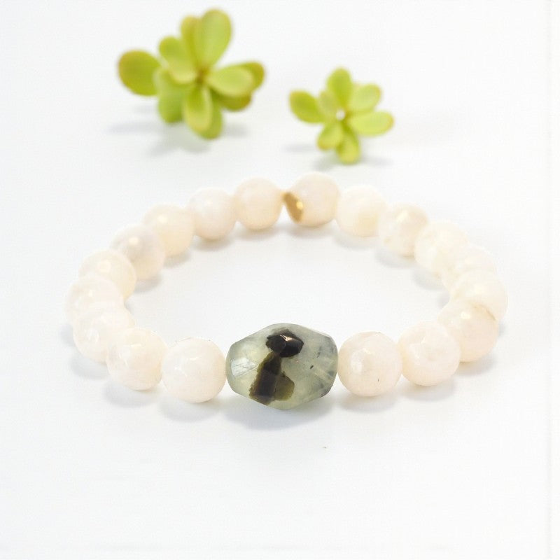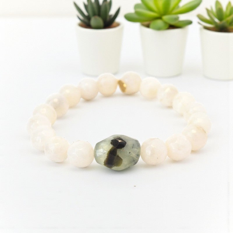 Cream Moonstone Bracelet | Featuring a Prehnite Center Stone