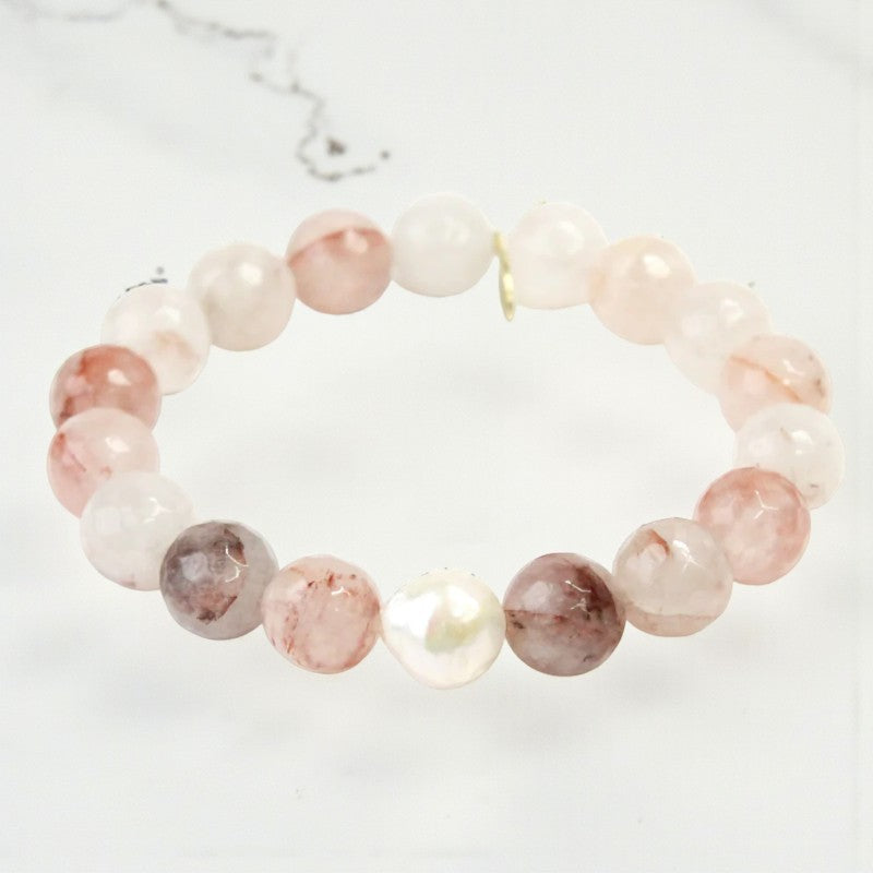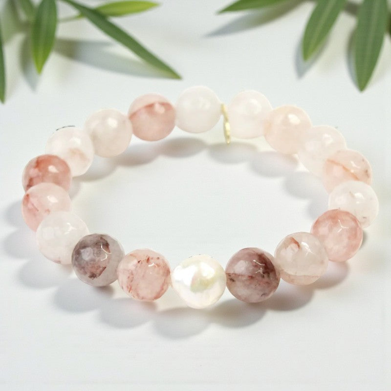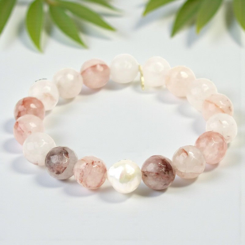 - **Happy Mindset:** The combination of strawberry quartz and white pearl encourages a happy mindset and a newfound shift in life, promoting positivity and joy in your daily experiences.