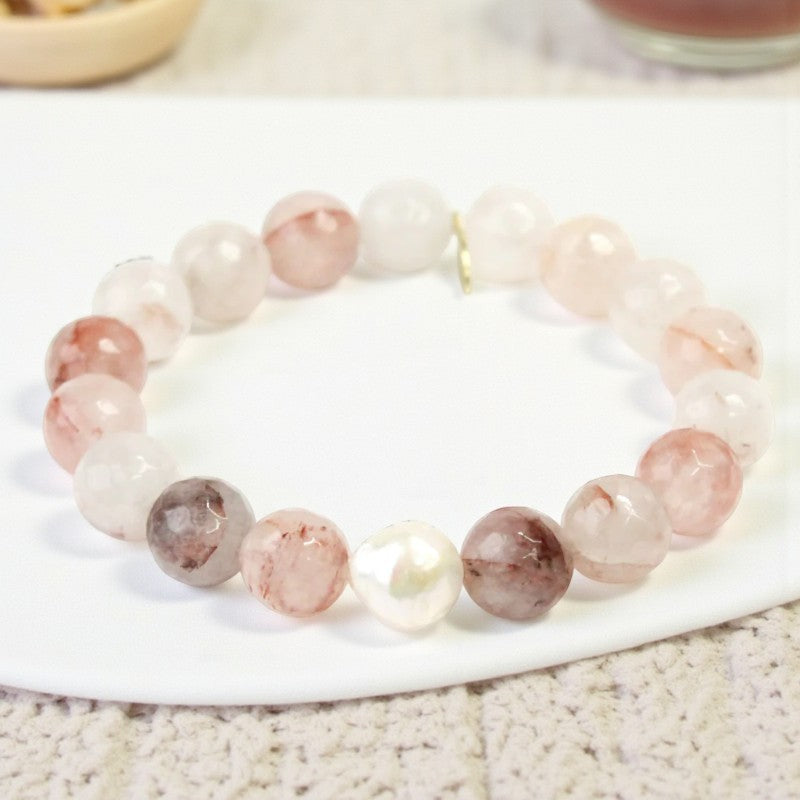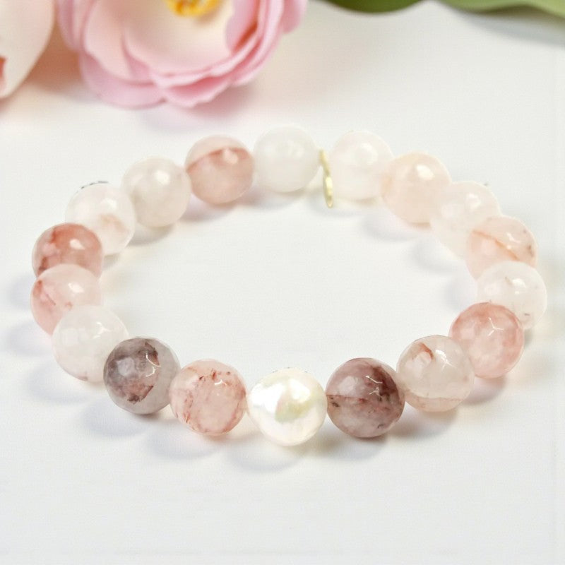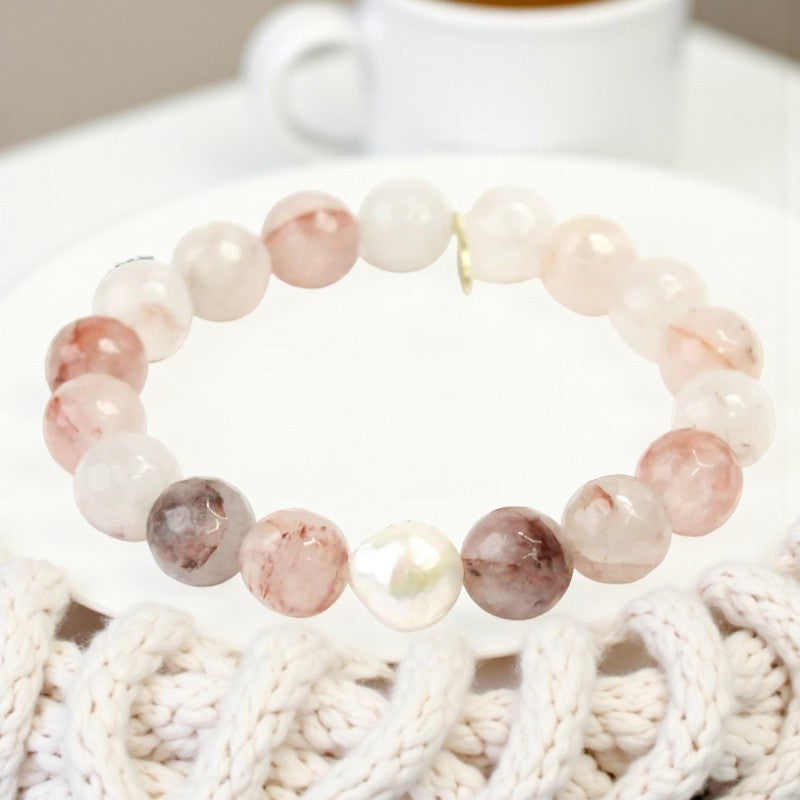 Crystal Harmony | Strawberry Quartz & White Pearl Elegance Bracelet