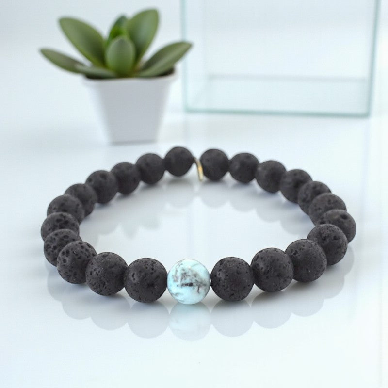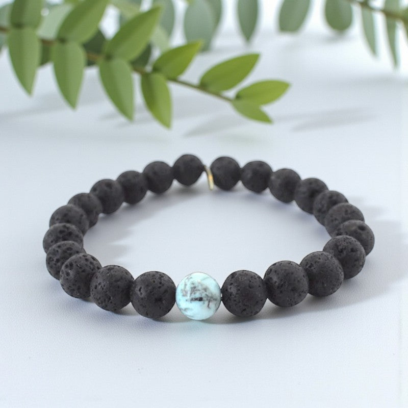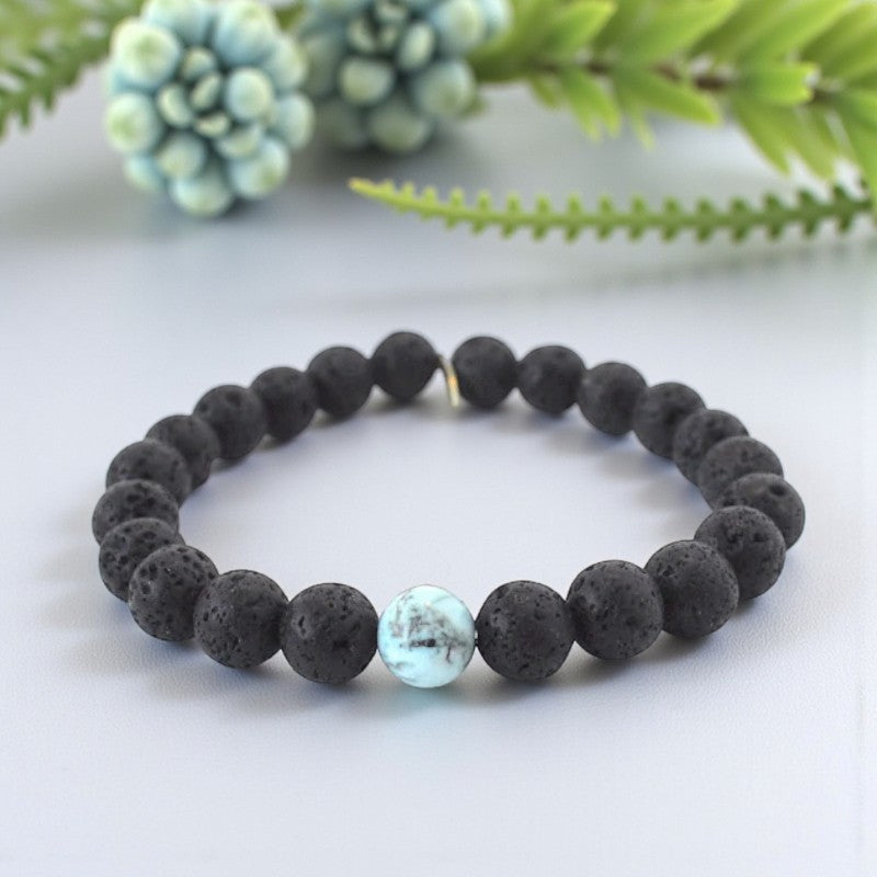 December Birthstone Bracelet | 8mm Lava and Turquoise Gemstone Bracelet