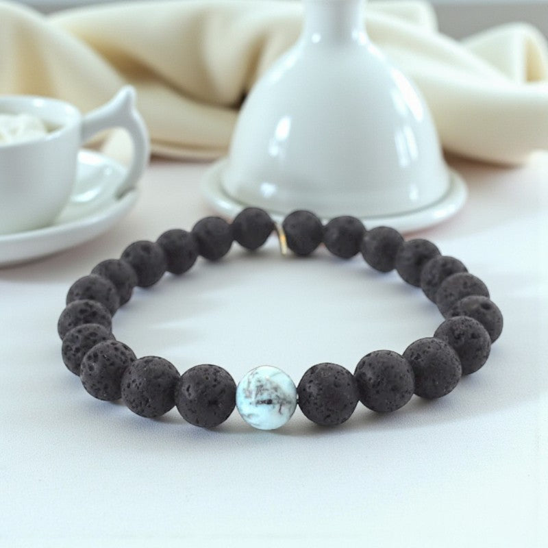 Lava stone, known for its grounding and transformative energies, complements turquoise by enhancing creativity, internal strength, and self-love. It calms internal anger and rage, offering guidance and understanding during challenging times. As an essential oil diffuser, lava stones absorb and retain the scent of essential oils, creating a calming aura throughout the day.