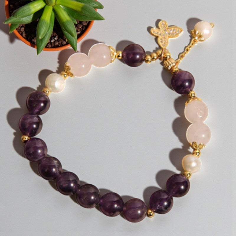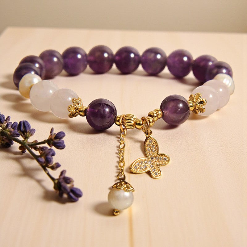 Divine Amethyst Pearl Crystal Spiritual Harmony Butterfly Charm Bracelet