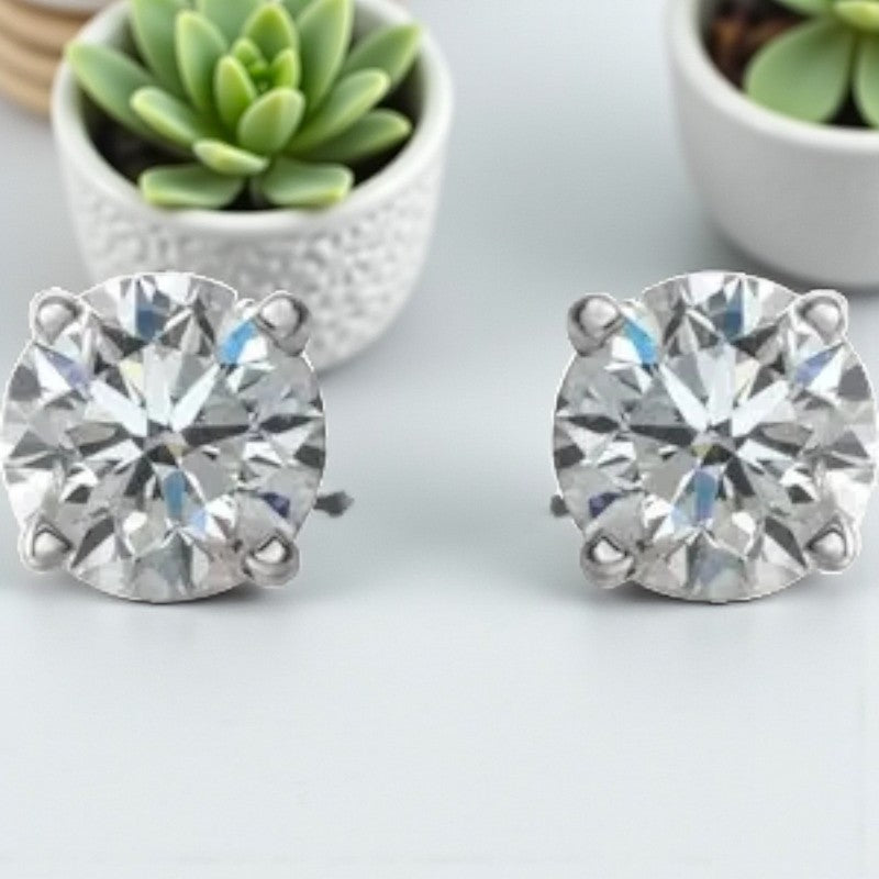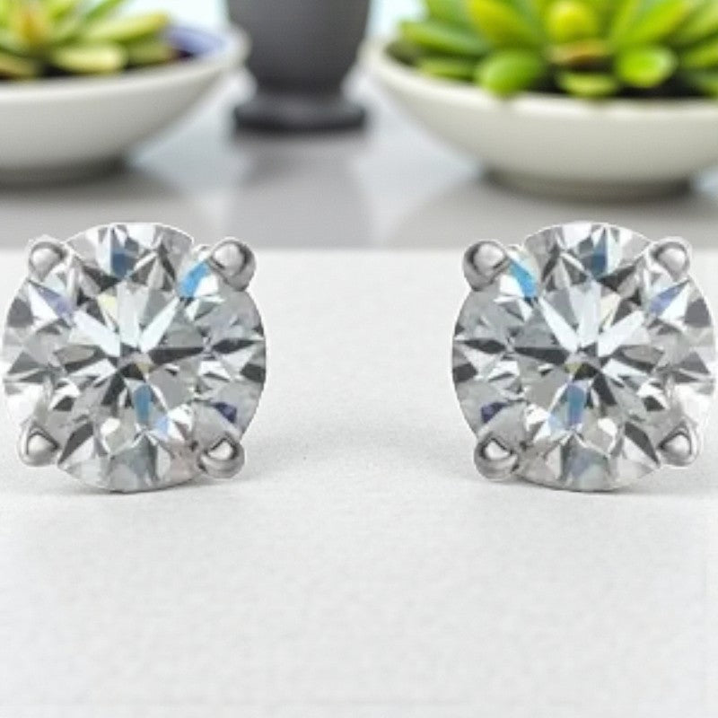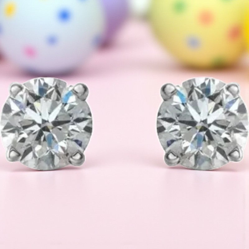 Indulge in the allure of timeless elegance with these exquisite 14K white gold diamond stud earrings. Radiating a dazzling brilliance, these earrings shimmer with round white diamonds that capture and reflect light with unmatched sparkle and sophistication. Each earring boasts a stunning 1/2 carat diamond, adding a touch of luxury to any ensemble.