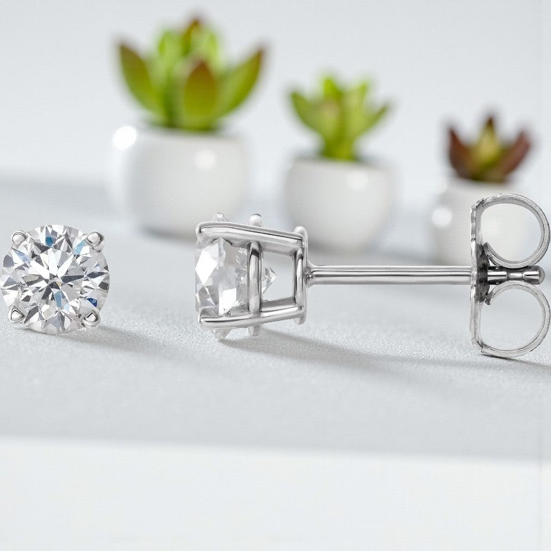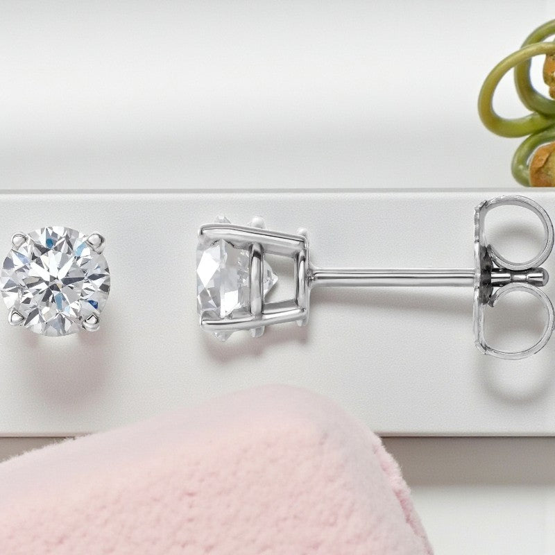 Elegant Brilliance: 14K White Gold 1 Carat Total Weight Natural Diamond Stud Earrings with Secure Friction Post