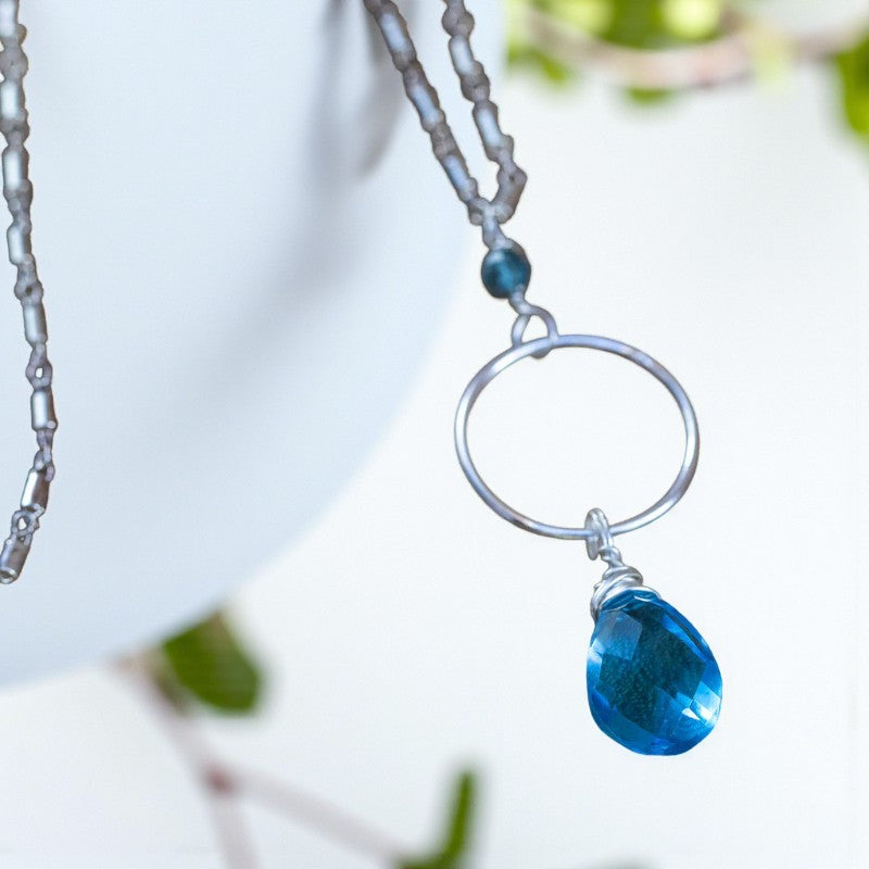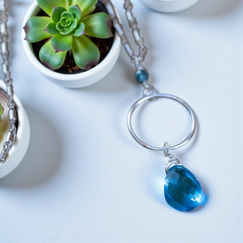 Embrace Your Essence: Azure Topaz Teardrop Sterling Silver Necklace