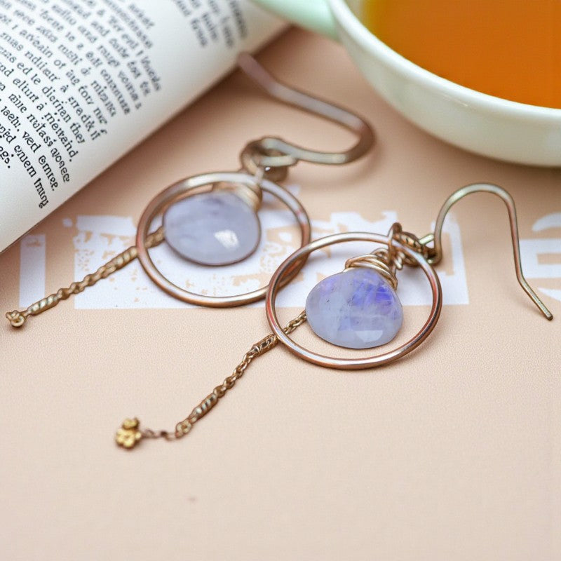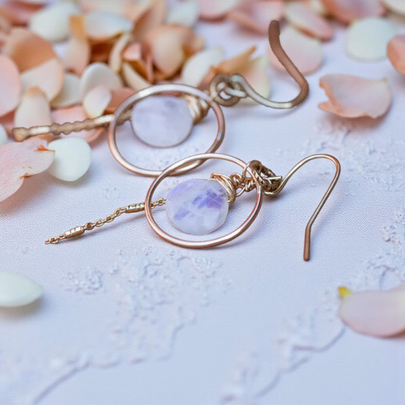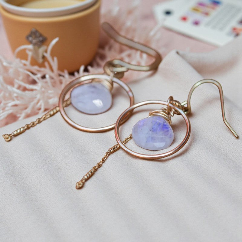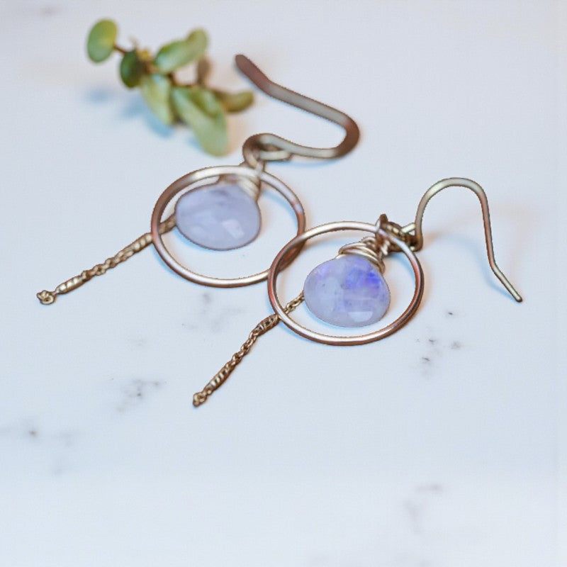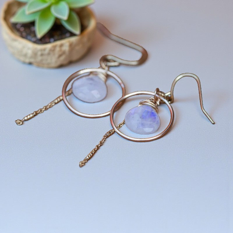 Embrace Your Magic: Rainbow Moonstone Circular Gold Earrings