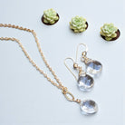The versatility of this set renders it indispensable in your jewelry repertoire. Whether you're bound for the workplace, a social soiree, or a leisurely outing, the Quartz Crystal Necklace and Earring Set complements any attire with its understated allure. The neutral hues of the crystals ensure they stand as a timeless accessory that effortlessly transitions from day to night.