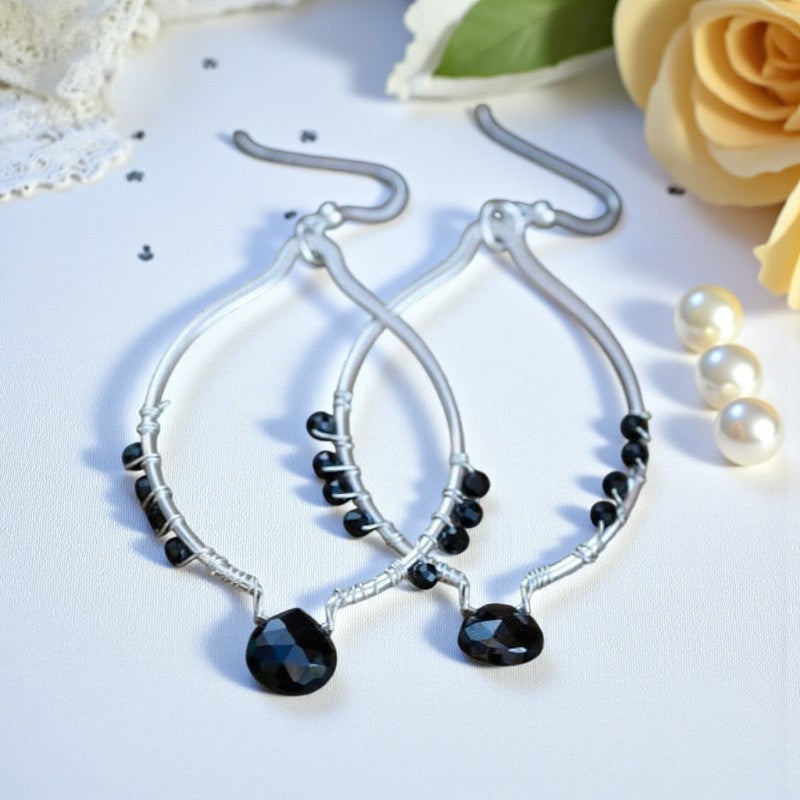 These exquisite earrings embody a captivating fusion of elegance, allure, and profound depth, meticulously crafted to elevate any ensemble, be it a refined black-tie affair or a lively night out with friends. Fashioned entirely with faceted black spinel stones, each earring is expertly designed to capture and refract light with dazzling brilliance. Serving as both central focal points and delicate side accents, the faceted black spinel stones harmonize to strike a perfect balance between bold sophistication and understated glamour. The deep, lustrous charm of black spinel commands attention, rendering these earrings both mesmerizing and endlessly versatile.