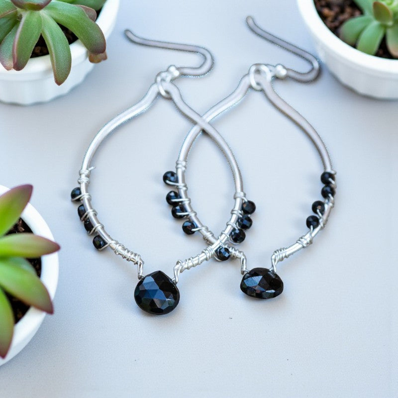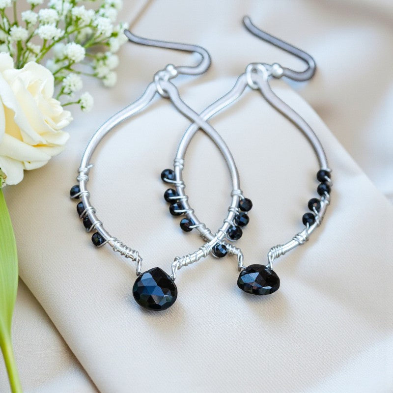 Beyond its aesthetic allure, black spinel is revered for its spiritual and healing attributes. Regarded as a protective talisman, black spinel is believed to ward off negative energies while fostering resilience, grounding, and self-assurance. Mystics view black spinel as a stone of rejuvenation, guiding the wearer to release old patterns and emotional barriers, embracing change with clarity and purpose. It is also thought to alleviate stress and instill a sense of tranquility, transforming these earrings into more than mere adornments but potent symbols of inner fortitude and serenity.