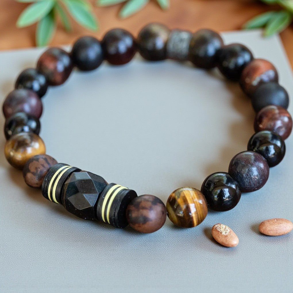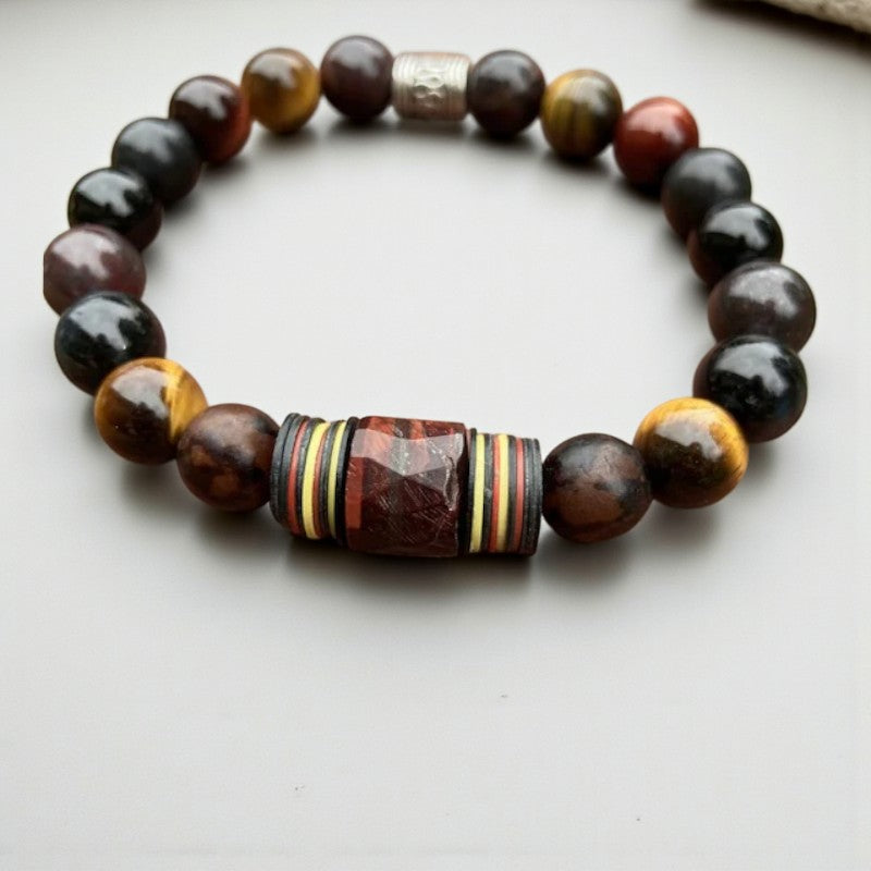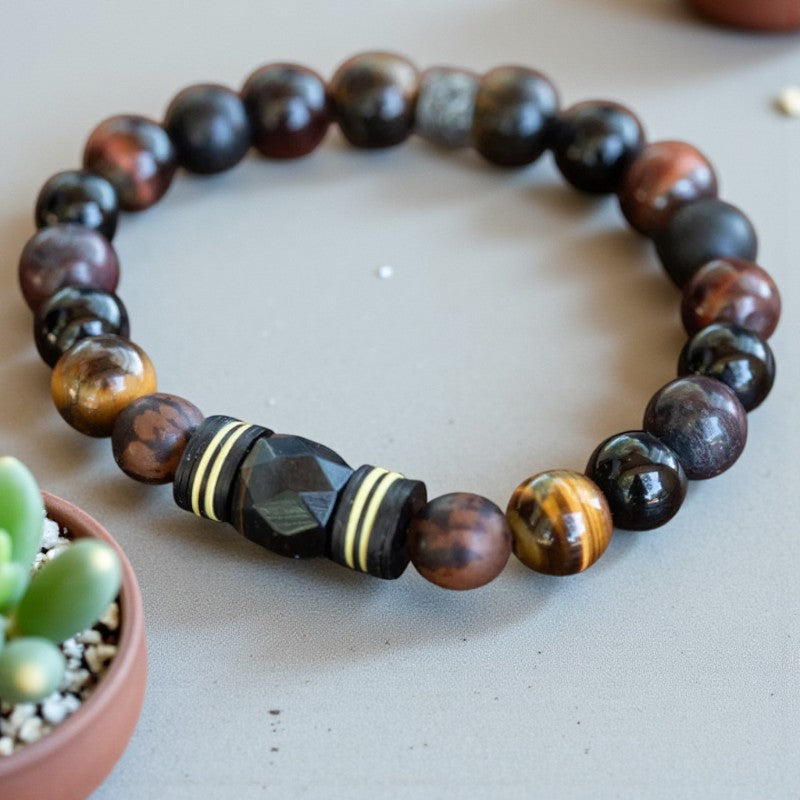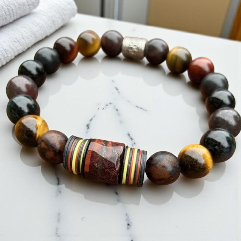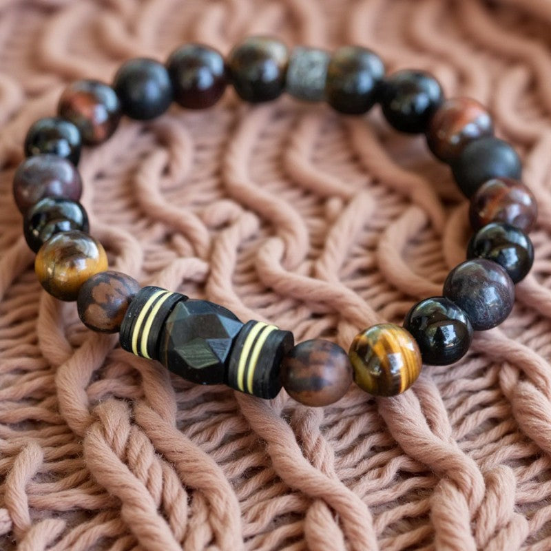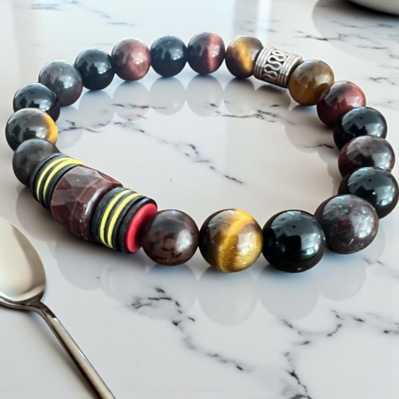 Empowering Essence: Tiger Eye, Brecciated Jasper, Shungite, Onyx Men's Stacking Bracelet