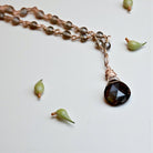 The tale unfolds with a faceted Smoky Quartz lovingly encased in rose gold, forming a breathtaking pendant that embodies elegance. Rose gold, chosen for its subtle hue that enhances the gemstone's beauty, adds a touch of sophistication to the piece. The pendant hangs from a chain crafted from smoky topaz wire-wrapped intricately, creating a striking visual impact. Transitioning seamlessly into a solid rose gold chain, this necklace is designed for empowered women like you.