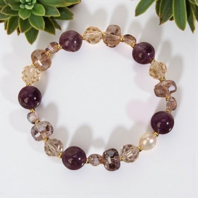 Enlightened Harmony Amethyst White Crystal Pearl Bracelet