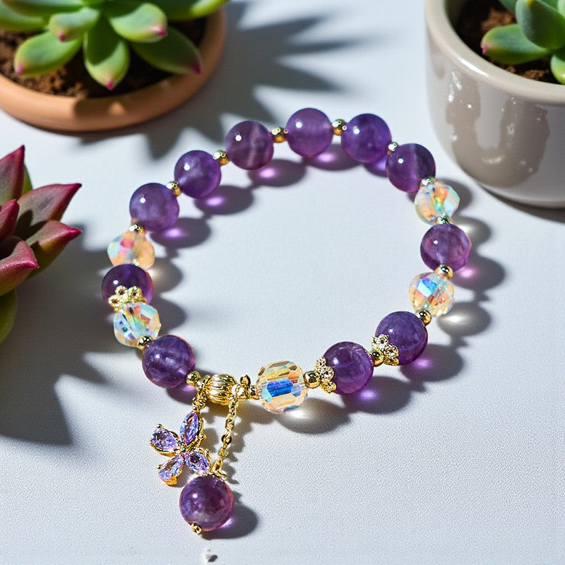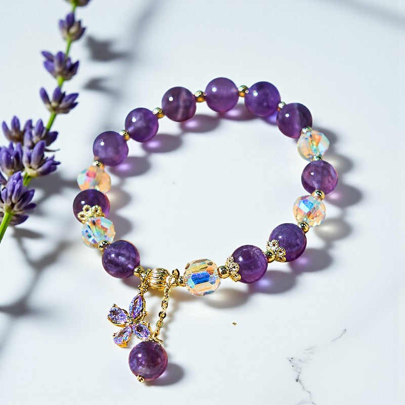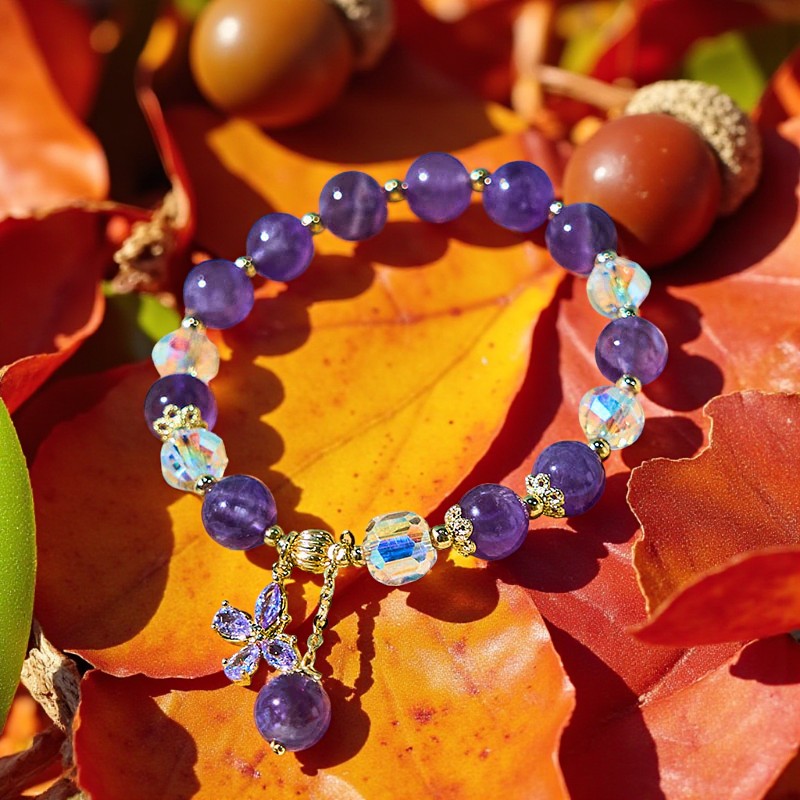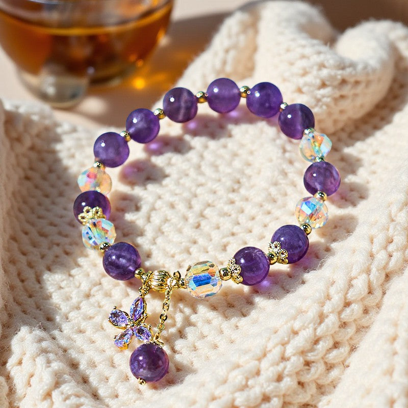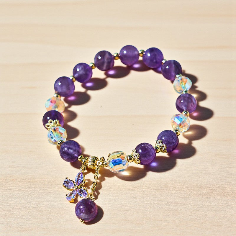 Amethyst Crystal Spiritual Butterfly Charm Bracelet