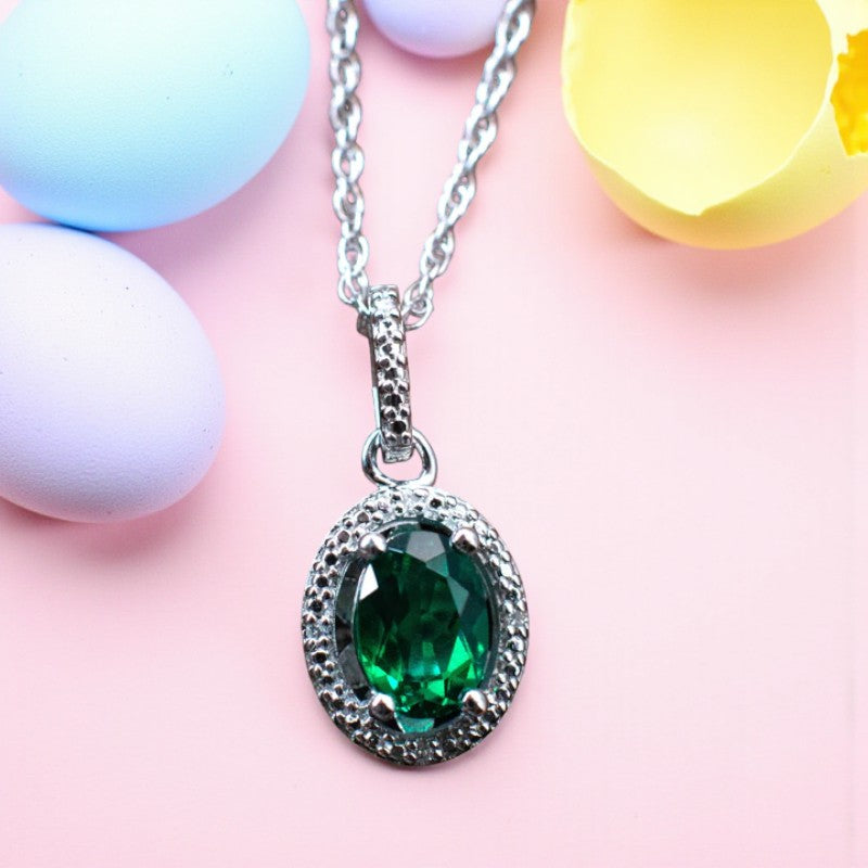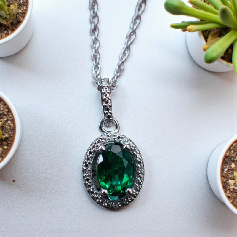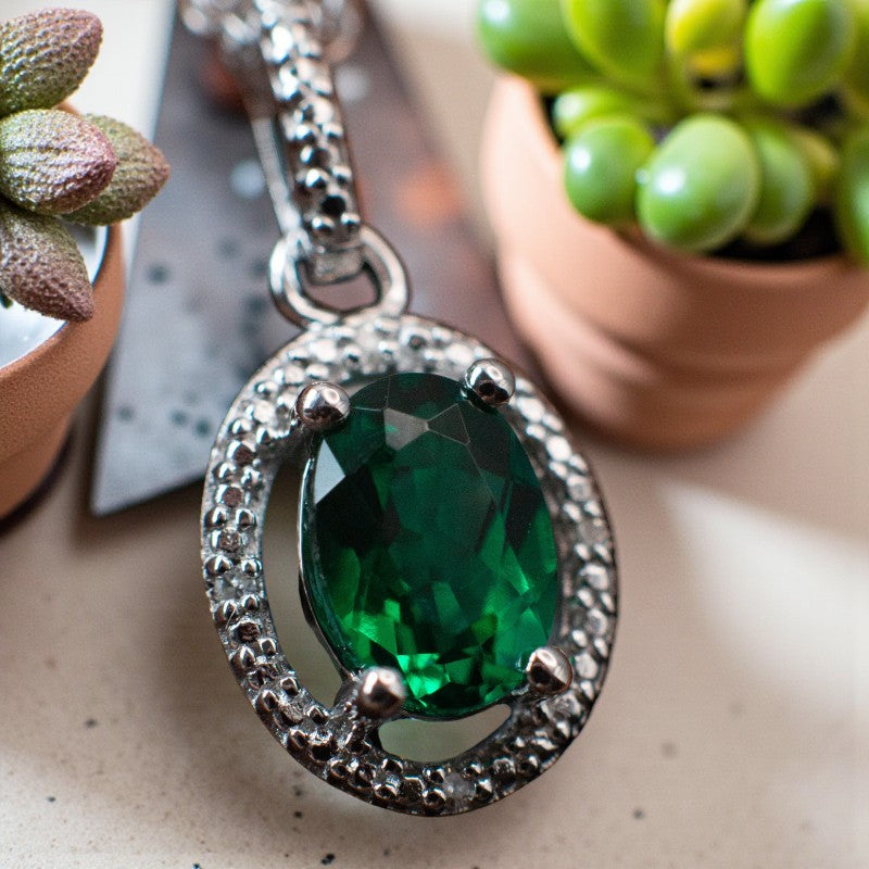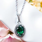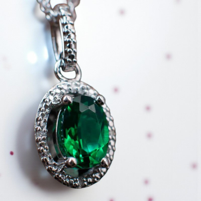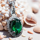 Eternal Radiance: Emerald and Diamond Halo Pendant Necklace