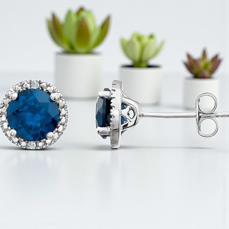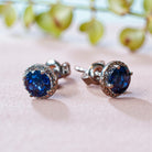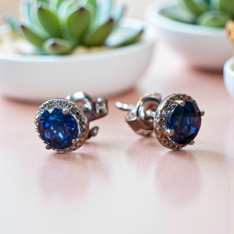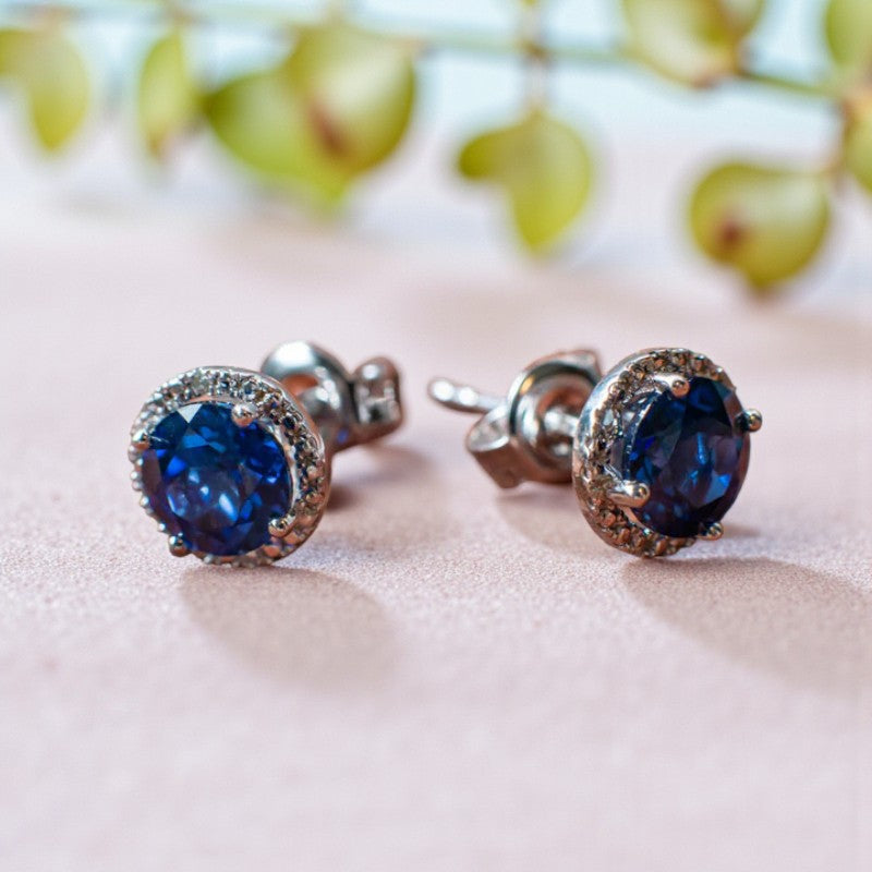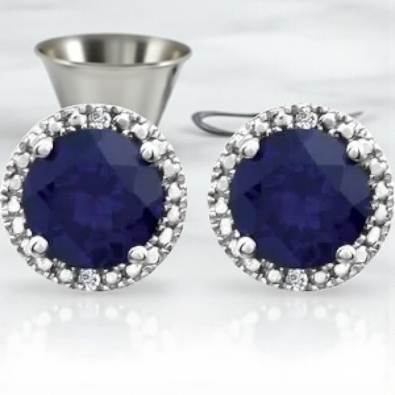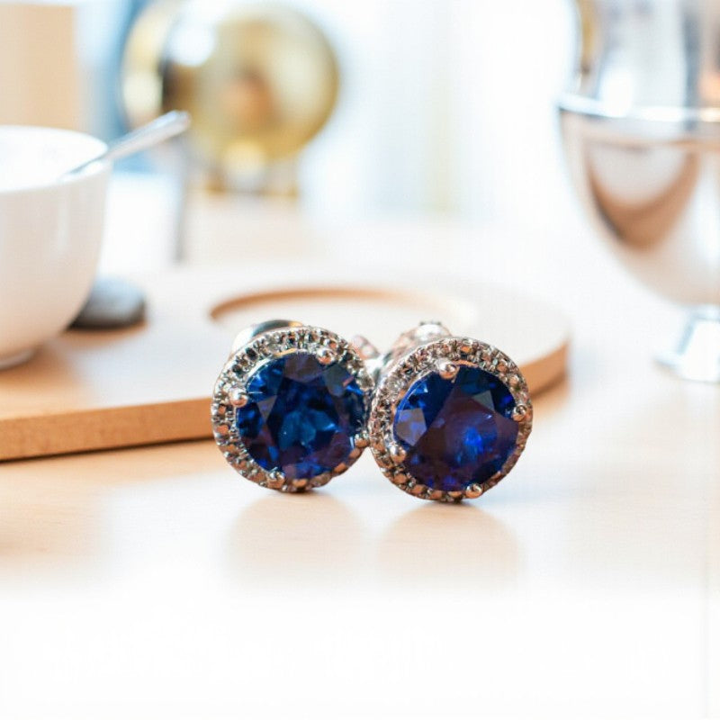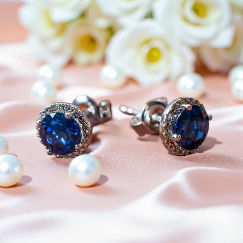 Ethereal Devotion: Blue Sapphire and Diamond Stud Earrings