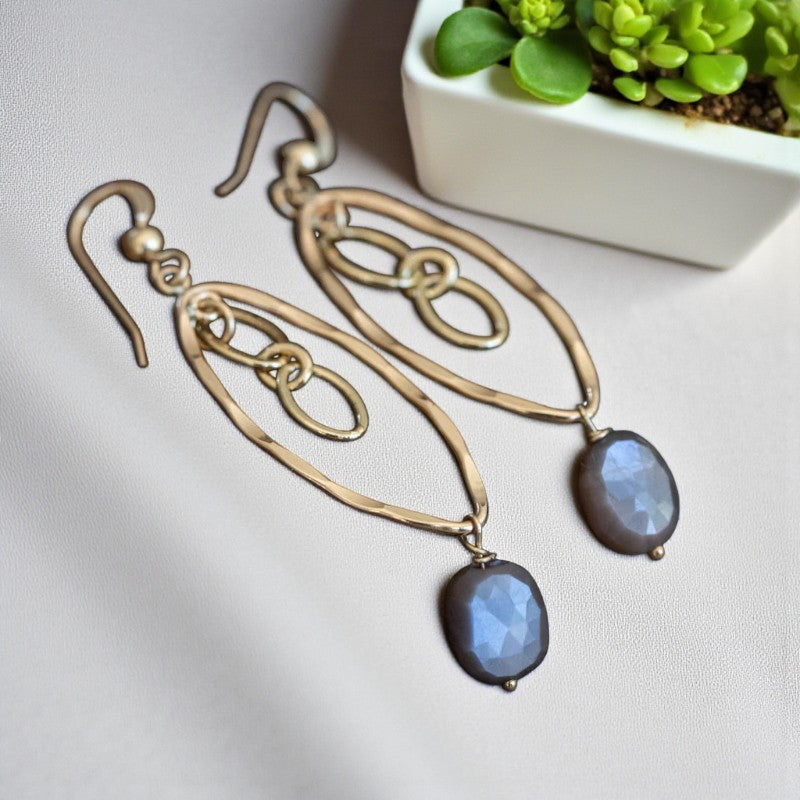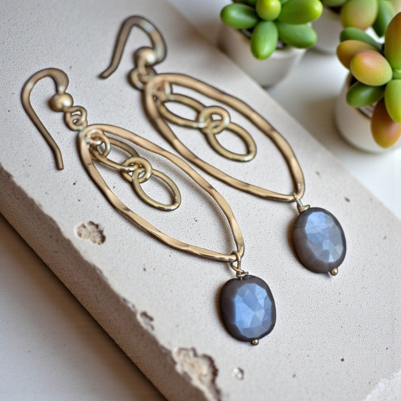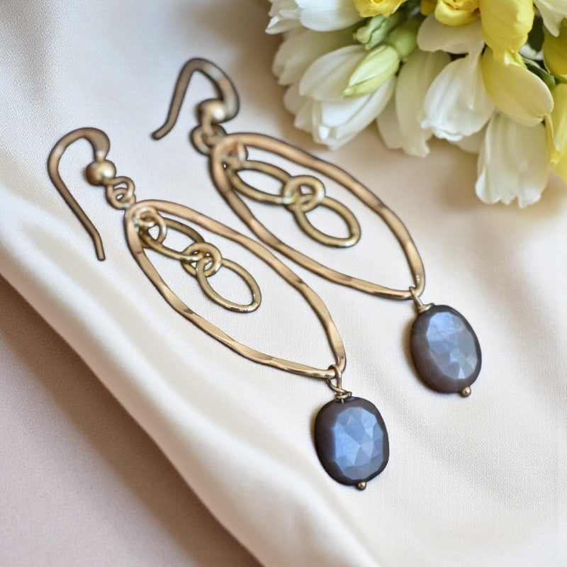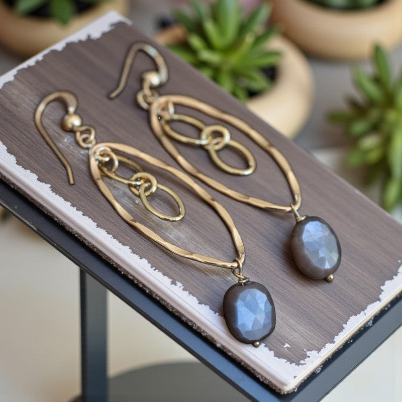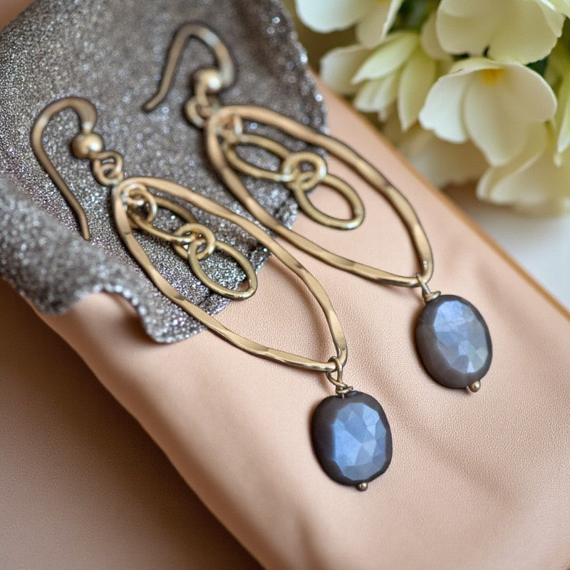 Beyond their aesthetic charm, dark mystic peach moonstone holds profound metaphysical significance, believed to be a potent talisman of intuition, emotional healing, and serenity. Embodying feminine energy and the lunar cycles, peach moonstone is revered for its ability to soothe emotional turmoil, imparting a sense of calm and rootedness. Wearing these earrings can evoke a profound sense of inner tranquility, resilience, and emotional equilibrium, guiding one to embrace the natural rhythms of life with grace.