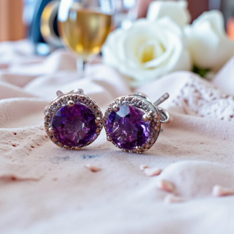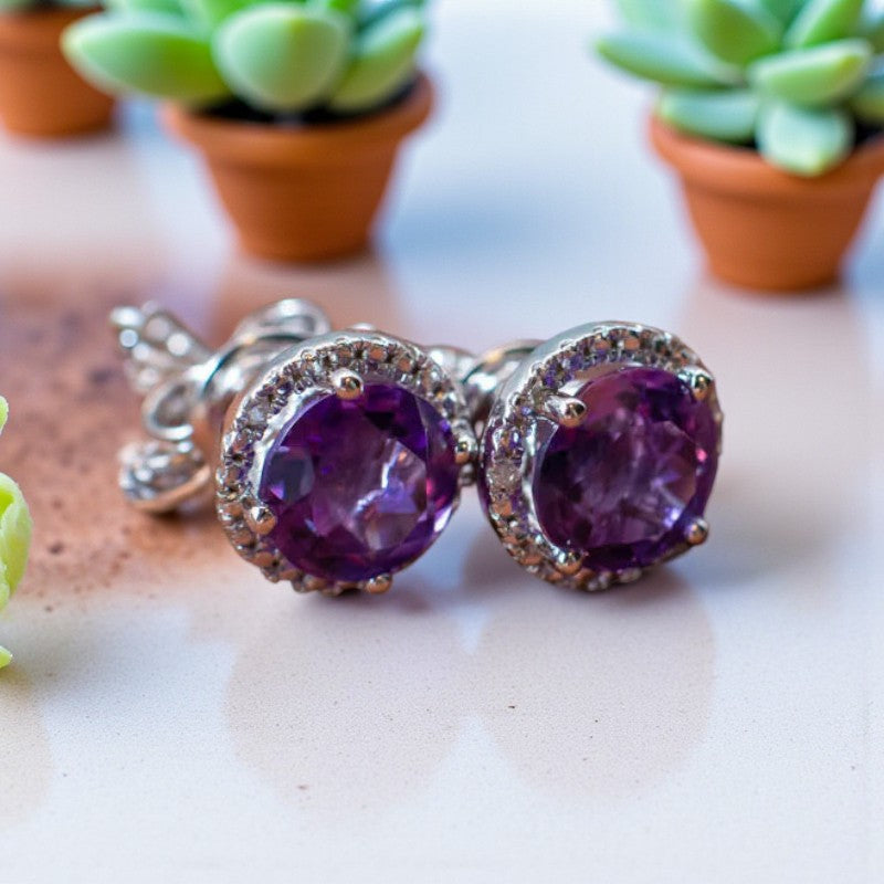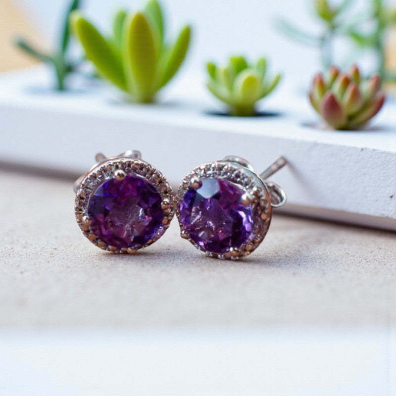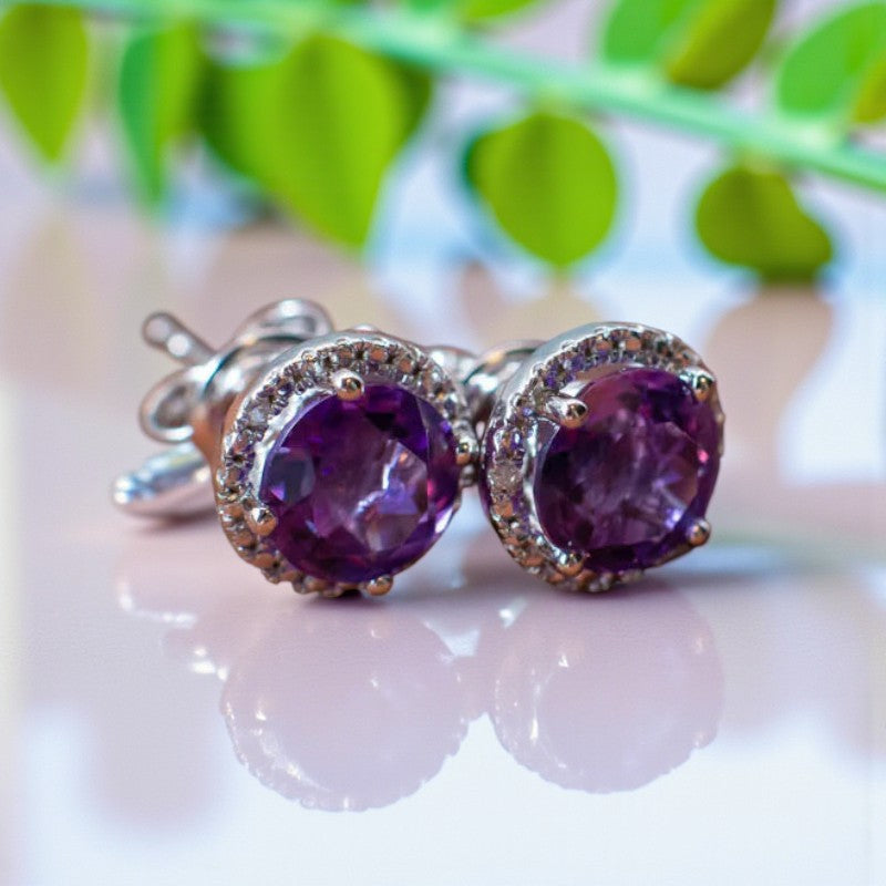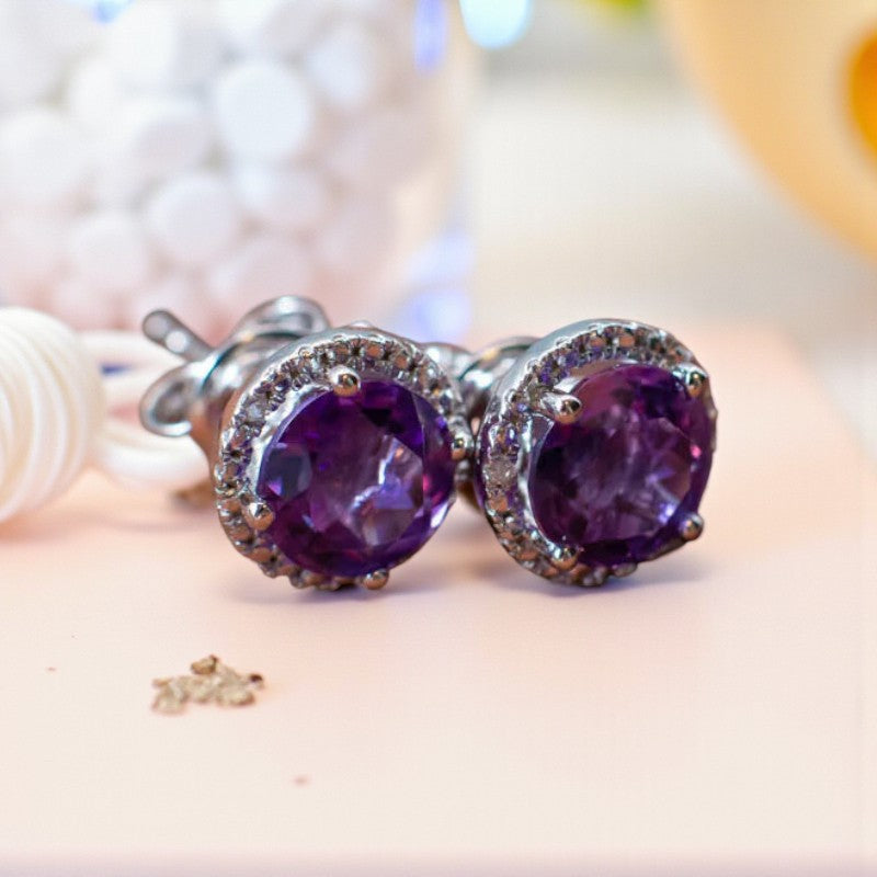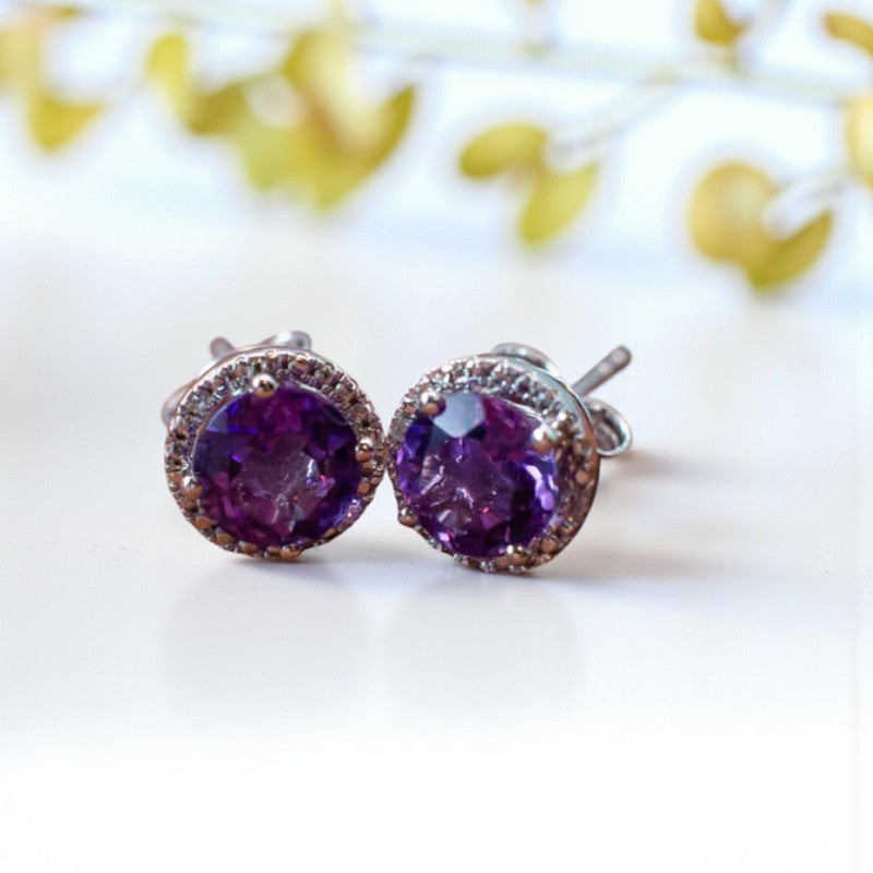 Ethereal Radiance: Amethyst and Diamond Stud Earrings that Illuminate Beauty