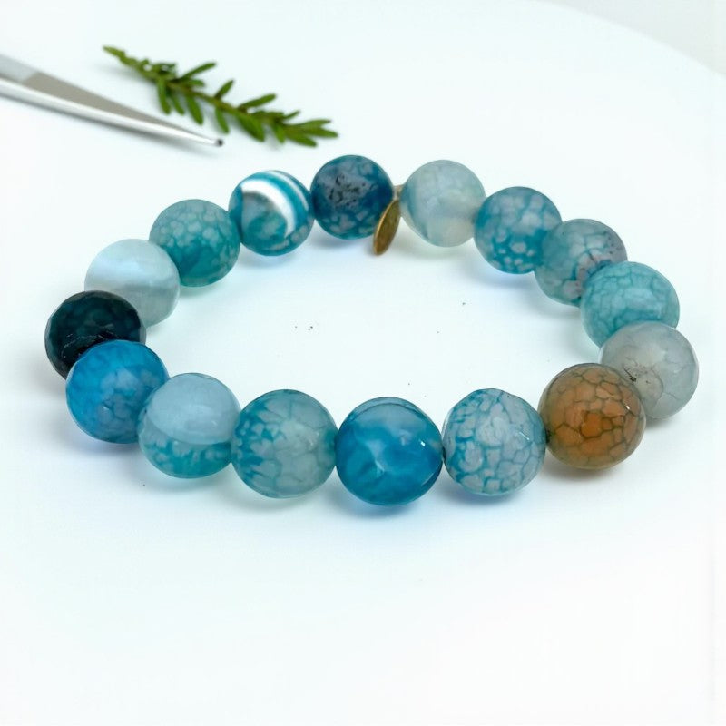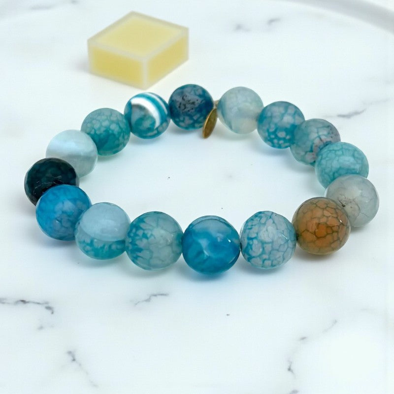 Handle your bracelet with care, as it is meant to be worn daily to benefit from its healing energies. If you prefer not to wear it while you sleep, keep it within a foot of you on your nightstand or under your pillow to maintain its beneficial effects. Embrace the transformative power of the Crab Fire Agate Bracelet as it cleanses your lymphatic system, heals skin disorders, and brings harmony and balance to your life.